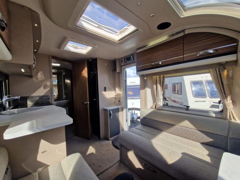 Handicapped Accessible; TV Aerial; Central Heating; Fixed Double Bed; Blinds; Double Glazing; 240V Lighting; Digital Radio; Bluetooth Audio Streaming; Round Seating Group; Sunroof; Full Service History; Microwave; Cooker; USB Docking; External Side Lockers; 12V Lighting; Central Seating Group; Grill; Mains Hookup; Separate Shower; Oven; Sink; USB Audio; AM/FM Stereo; Hand Washbasin