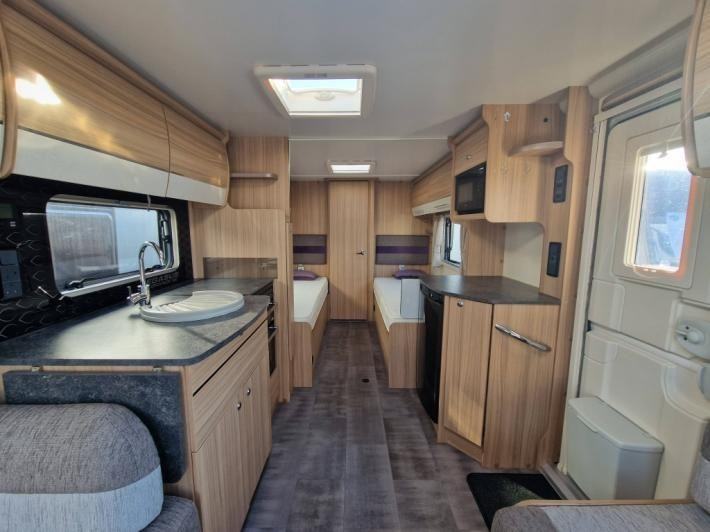End Washroom,Fixed Bed,Fridge,Microwave,Heater,Oven,Mains electric,Water heater,Cassette toilet,Shower,Blinds,Fly screens,Door flyscreen,Loose fit carpets,Stereo system,Alarm,Battery charger,Solar panel,Alloy wheels,Spare wheel,TV Directional Aerial,Hitch head stabiliser,Sun roof,External 230v,12 month warranty,Truma blown air heating