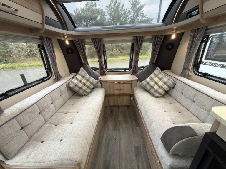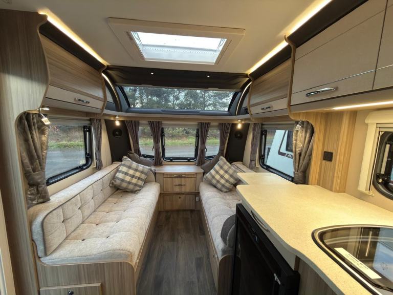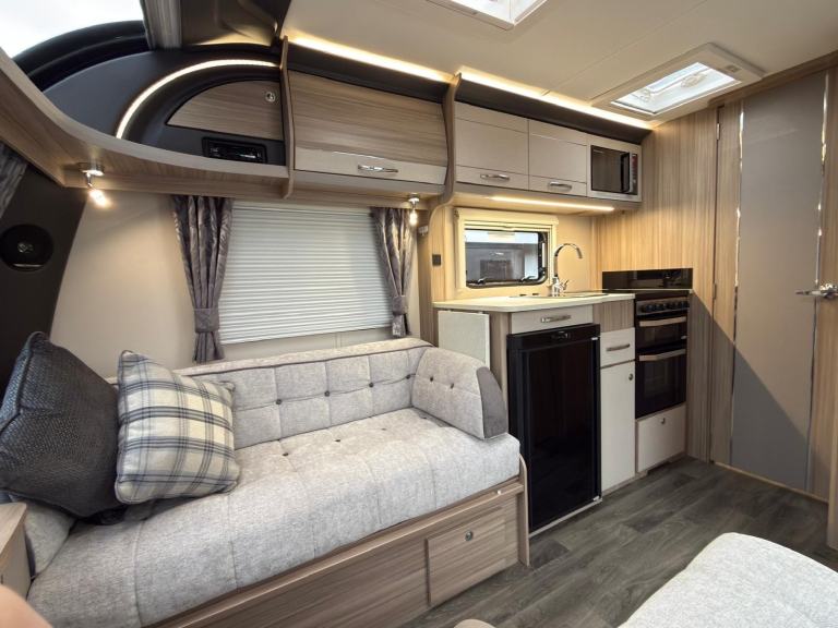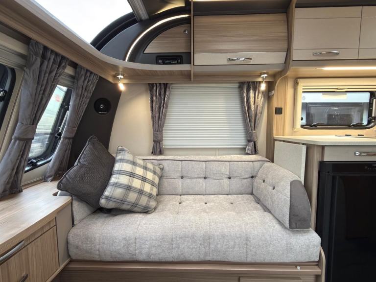 Bright & Sumptuous parallel front lounge – quality upholstery, panoramic front window, converts to a large double