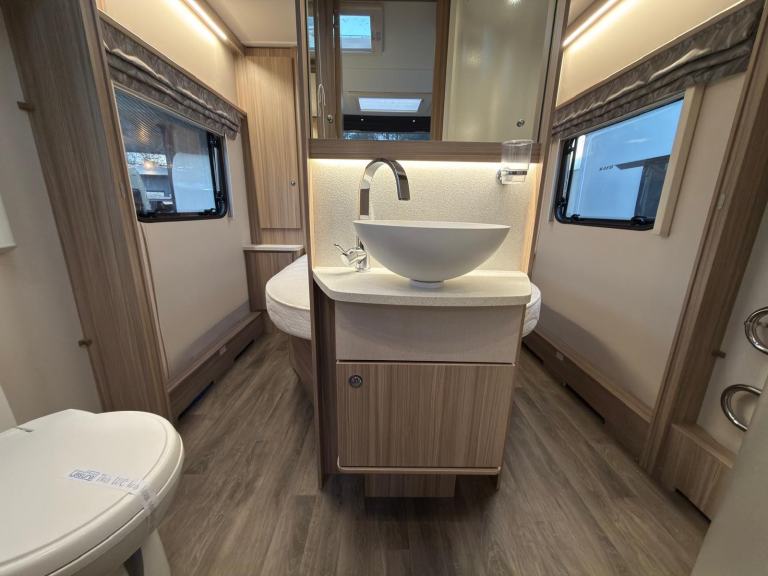 Spacious washroom – separate shower cubicle, vanity unit, cassette toilet