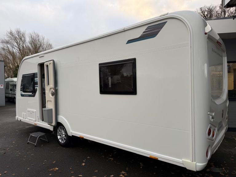 A stunning example of this sought-after Coachman Rear Island Fixed Bed Caravan with a spacious mid washroom, Helping you to enjoy your caravan holidays in a superb rolling home of your own.