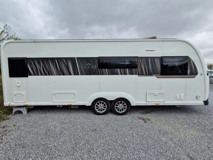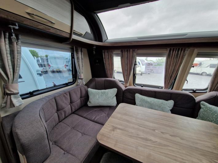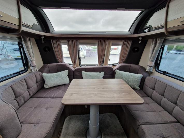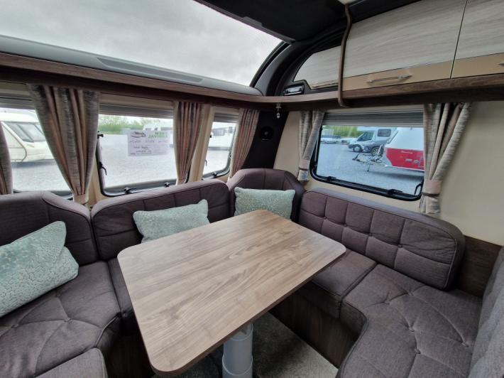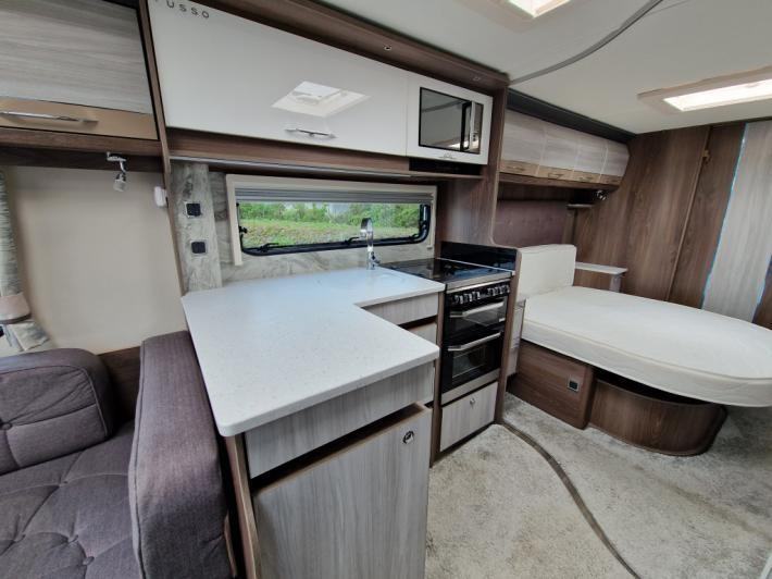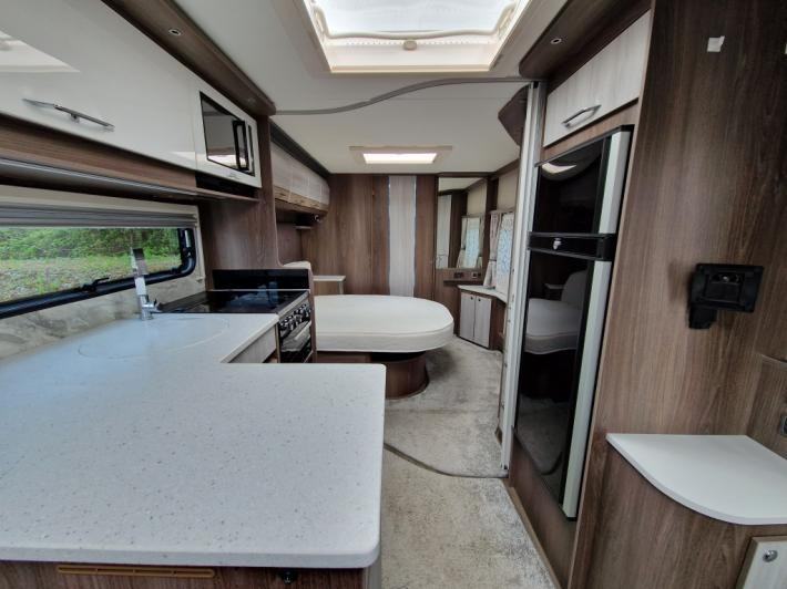 End Washroom, Fixed Bed, L Shaped Lounge, Microwave, Fridge, Heater, Oven, Mains electric, Water heater, Cassette toilet, Shower, Battery Charger, Blinds, Fly screens, Door flyscreen, Loose fit carpets, Onboard water tank, Wet central heating system, Alarm, TV Directional Aerial, Stereo system, Sun roof, Large rooflight, Solar panel, External gas BBQ point, External 240v, Spare wheel, Alloy wheels, Hitch head stabiliser, Twin axle, Part exchange welcome, Finance available subject to status written quotations available on request.