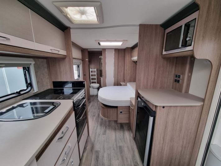 End Washroom, Fixed Bed, Extractor fan, Microwave, Fridge, Oven, Mains electric, Water heater, Cassette toilet, Shower, Battery Charger, Blinds, Fly screens, Door flyscreen, Wet central heating system, Alarm, TV Directional Aerial, Stereo system, Sun roof, External gas BBQ point, External 240v, Spare wheel, Alloy wheels, Hitch head stabiliser, 12 month warranty, Part exchange welcome, Finance available subject to status written quotations available on request