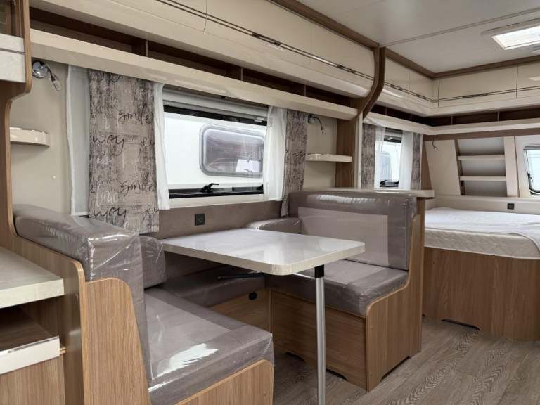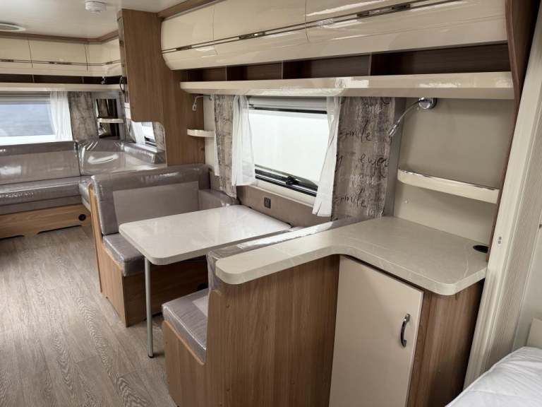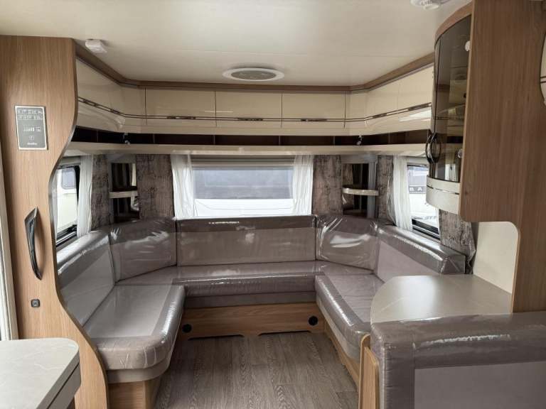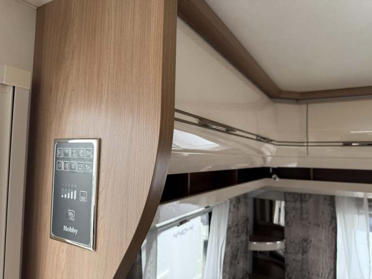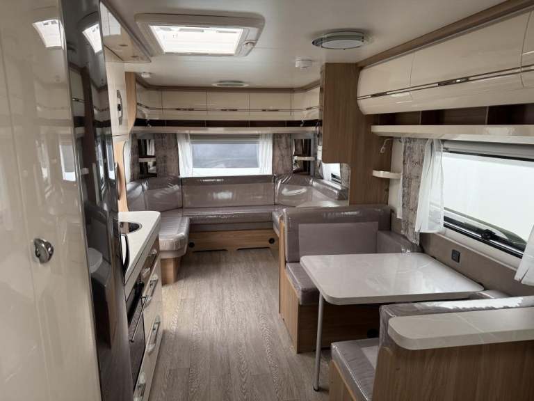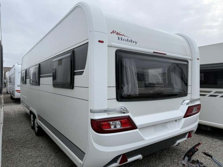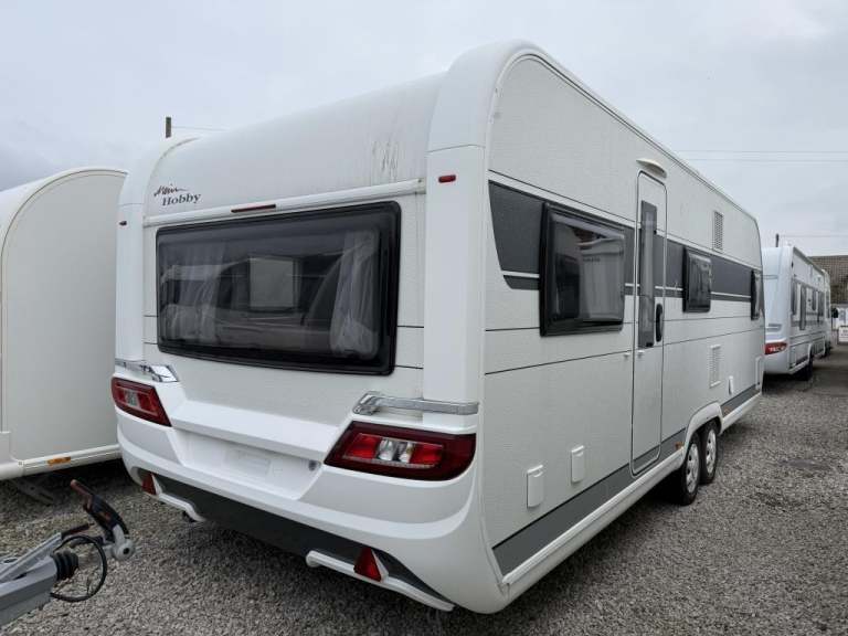 2021 Hobby 650 umfe Fixed large bed over tow hitch.?Toilet with shower over the top?External vanity unit with sink and cupboards ?Large cupboard with sliding door?Side dinette which converts into single bed?Kitchen with tall 3way fridge freezer,3 gas burner, hob Oven,Sliding unit and drawers?Large area for tv?U Shape seating with drop down table which converts into large double bed?Part exchange welcome finance and delivery available Can stay on a seasonal pitch in North Wales, if need