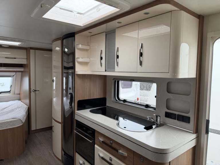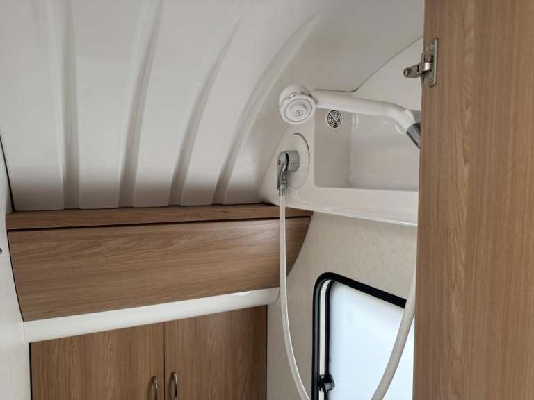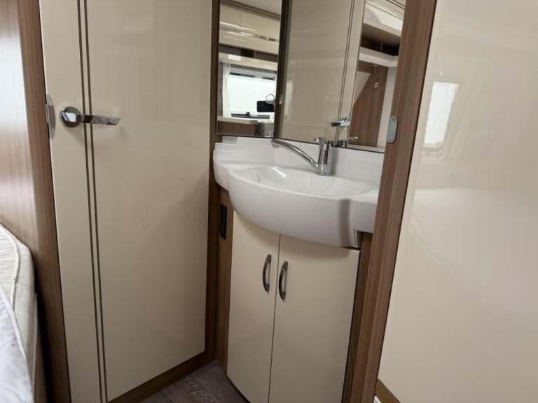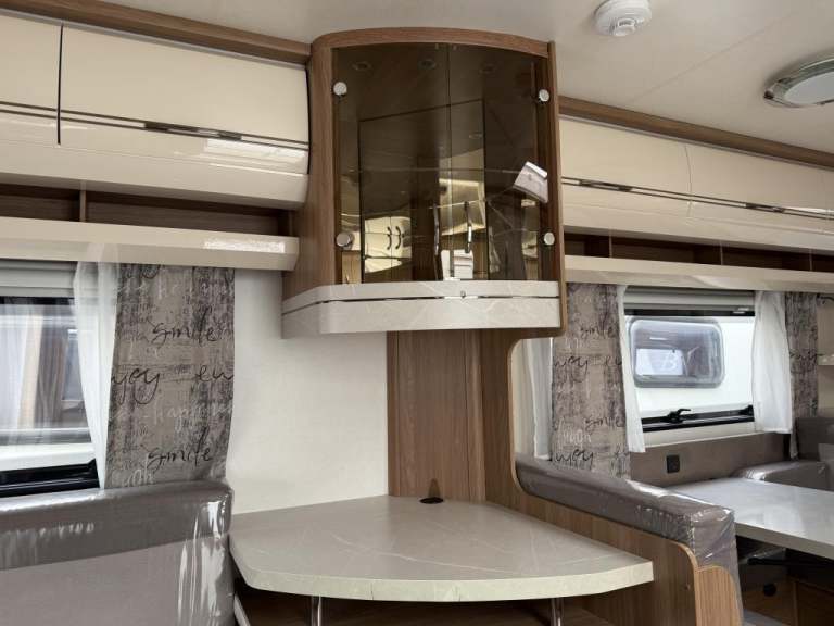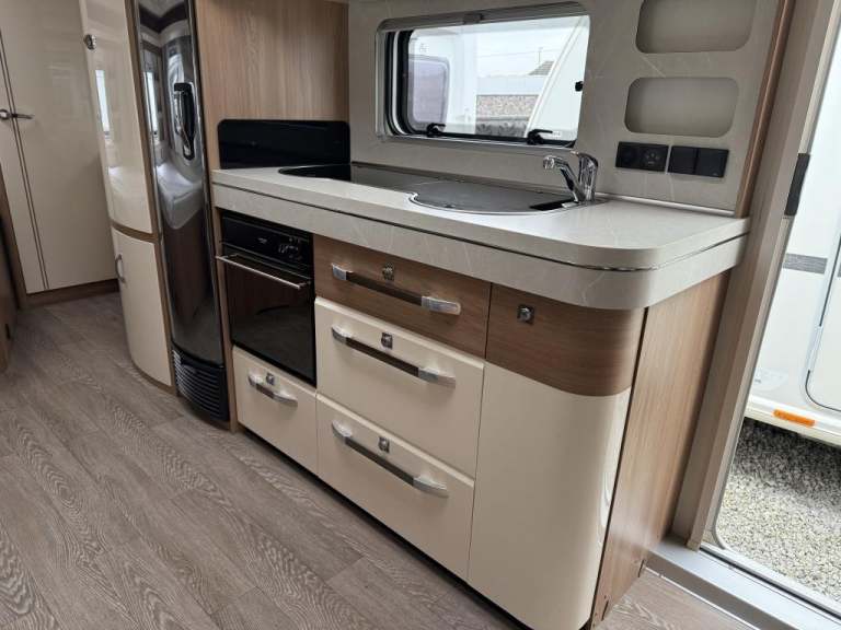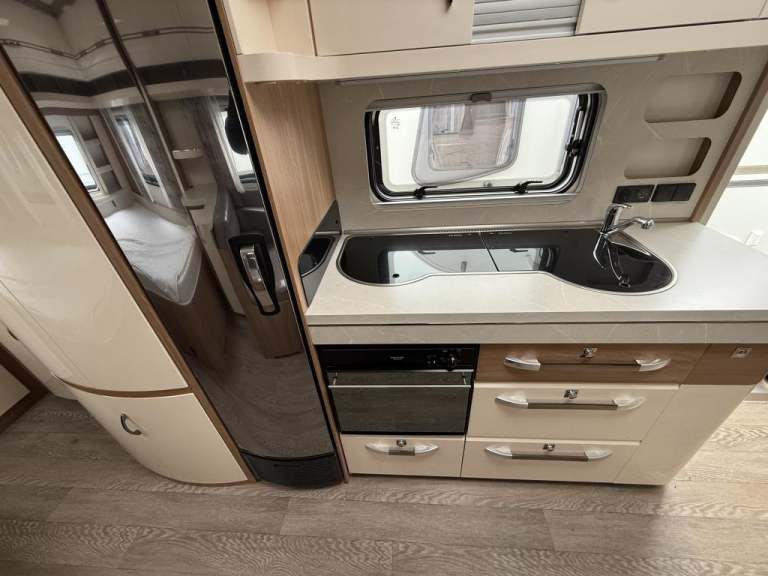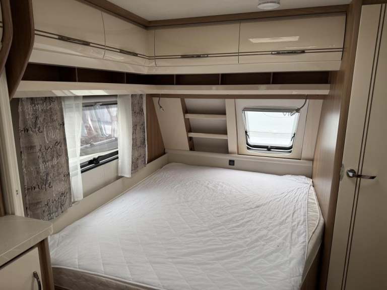 2021 Hobby 650 umfe Fixed large bed over tow hitch.?Toilet with shower over the top?External vanity unit with sink and cupboards ?Large cupboard with sliding door?Side dinette which converts into single bed?Kitchen with tall 3way fridge freezer,3 gas burner, hob Oven,Sliding unit and drawers?Large area for tv?U Shape seating with drop down table which converts into large double bed?Part exchange welcome finance and delivery available Can stay on a seasonal pitch in North Wales, if need
