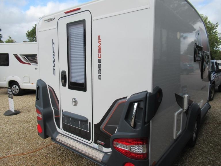This used 2021 Swift Basecamp is on display at our Oxford branch. This 4 berth caravan has an End dinette and a Lounge conversion. This caravan comes with a 12-month warranty. Full 100-point pre-delivery inspection, a motor mover make manouvering the caravan much easier, solar panel for keeping your leisure battery topped up, an external BBQ point so no need to connect a separate gas bottle, an external 240v plug socket for power in the awning. This caravan is also being supplied with a full starter kit worth over £500. This will include a Gas bottle, Gas pigtail, Leisure Battery, 25 Metre mains cable, Aquaroll, Wastemaster, Hitch Lock and Step. If you have all of these items we will supply £500 vouchers to spend in our shop instead. If you would like to hold this Swift Basecamp caravan for 72 hours we can take a refundable deposit of £500 subject to you viewing the caravan. If you require any further information on this caravan either call one of our sales team., Motor Mover, Solar Panel, External 240v, Gas Bbq Point, 12v Power, Alloy Wheels, Awning Light, Battery Charger, Blinds, Cassette Toilet, Double Glazing, Flyscreens, Free Standing Table, Fridge, Fridge Freezer, Galvanised Chassis, Heater, Heki Rooflight, Hitch Stabiliser, Hob, Hot And Cold Shower Unit, Insulated Panels, Loose Fit Carpets, Mains Electric, Mixer Taps, Oven, Pull Out Bed, Shower, Shower Unit, Skylight, Smoke Detectors, Spare Wheel, Tv Aerial, Central Heating, Blown Air