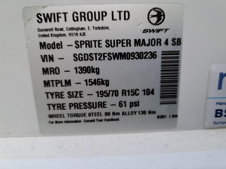 This used 2021 Swift Sprite is on display at our Swindon branch. This 4 berth caravan has an End washroom and a Fixed island bed. This caravan comes with a 12-month warranty. Full 100-point pre-delivery inspection. This caravan is also being supplied with a full starter kit worth over £500. This will include a Gas bottle, Gas pigtail, Leisure Battery, 25 Metre mains cable, Aquaroll, Wastemaster, Hitch Lock and Step. If you have all of these items we will supply £500 vouchers to spend in our shop instead. If you would like to hold this Swift Sprite caravan for 72 hours we can take a refundable deposit of £500 subject to you viewing the caravan. If you require any further information on this caravan either call one of our sales team., 12v Power, Alloy Wheels, Awning Light, Battery Charger, Blinds, Cassette Toilet, Double Glazing, Flyscreens, Free Standing Table, Fridge, Fridge Freezer, Galvanised Chassis, Heater, Heki Rooflight, Hitch Stabiliser, Hob, Hot And Cold Shower Unit, Insulated Panels, Loose Fit Carpets, Mains Electric, Mixer Taps, Oven, Pull Out Bed, Shower, Shower Unit, Skylight, Smoke Detectors, Spare Wheel, Tv Aerial, Central Heating, Blown Air