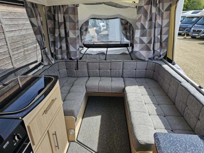 Available to view at our Highbridge branch is this lovely example of a 2022 Pennine Pathfinder sporting all the Pennine standard features to make your next camping trip as comfortable as possible. With large ventilated windows and a zip out front panel, stay cool on your next adventure. The spacious rear cabin with it's 2 fixed double beds, 3-way fridge, cassette toilet, triple burner, grill and oven, internal lighting, hot and cold running water, external 230v socket and shower point provide all the ammenities of home so you can enjoy the great outdoors in luxury. Complete with a full 2.5m awning and underbed skirts, set up all the space you need to enjoy a night away or a fortnight away. Come and visit us for a demonstration to see how quick and easy the Pennine Pathfinder is to set up and start planning your next holiday today.