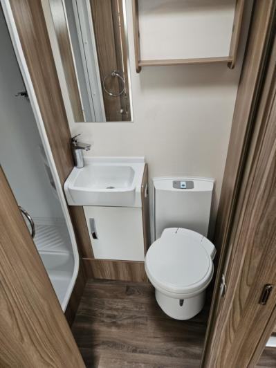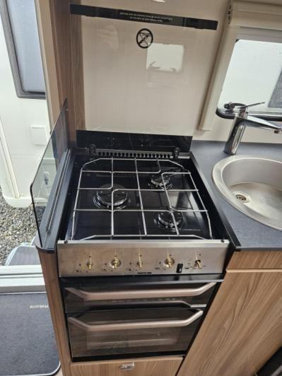 A light weight, 6 berth caravan from Swift with a great family layout. As you enter the caravan on the N/S towards the rear, there is a fantastic kid's area at the back with bunk beds and seating area with a table for activities. This can be partitioned off at nighttime for privacy allowing use of the rest of the caravan with minimal disturbances. In the center of the caravan is the kitchen which features a full cooker range, a microwave, three-way fridge and ample storage for kitchen items. Opposite this is the bathroom area which includes a Thetford cassette toilet, sink, small cupboard and a separate shower. Towards the front is a large lounge area where a TV can be located. The seating area also makes into a double bed for nighttime use.