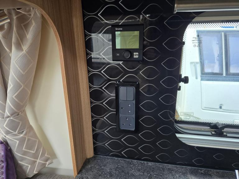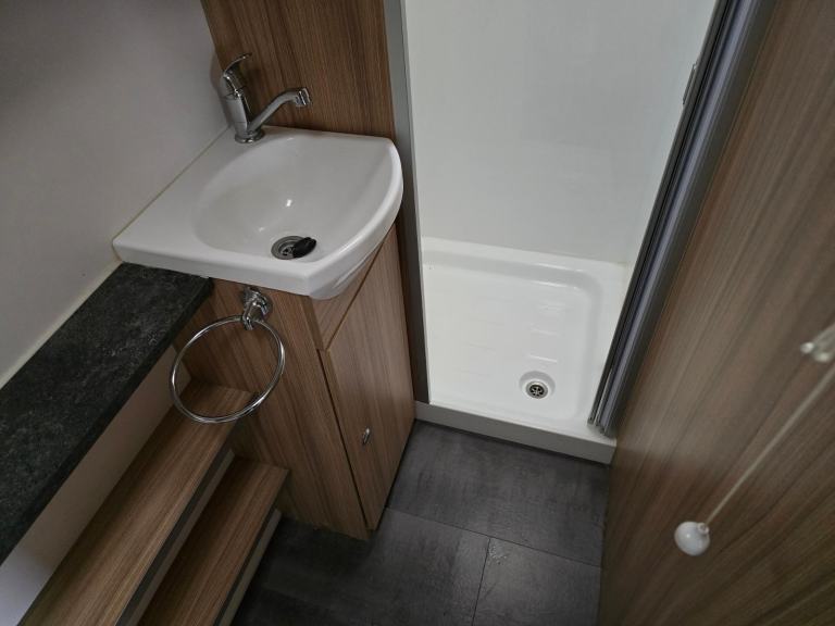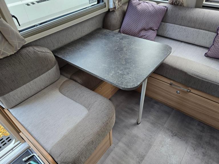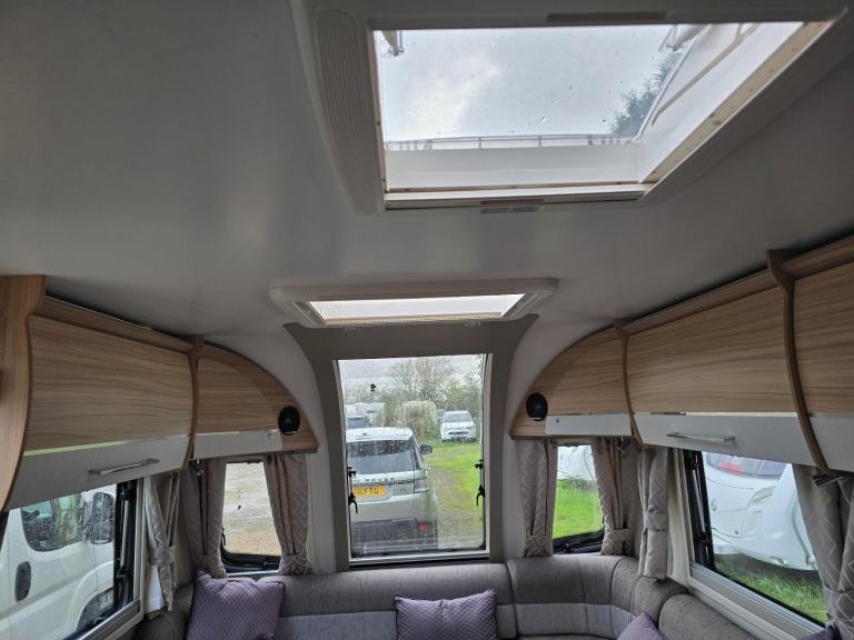 It also has a 3 way fridge with separate freezer, full oven hob and grill, stereo radio, blinds and nets on all the windows, heki rooflight, Truma iNet heating system, roof mounted digital aerial with booster box, 12v and 240v electrics, Nice upholstery, lots of storage space, end washroom with separate shower, sink with vanity unit and swivel cassette toilet.