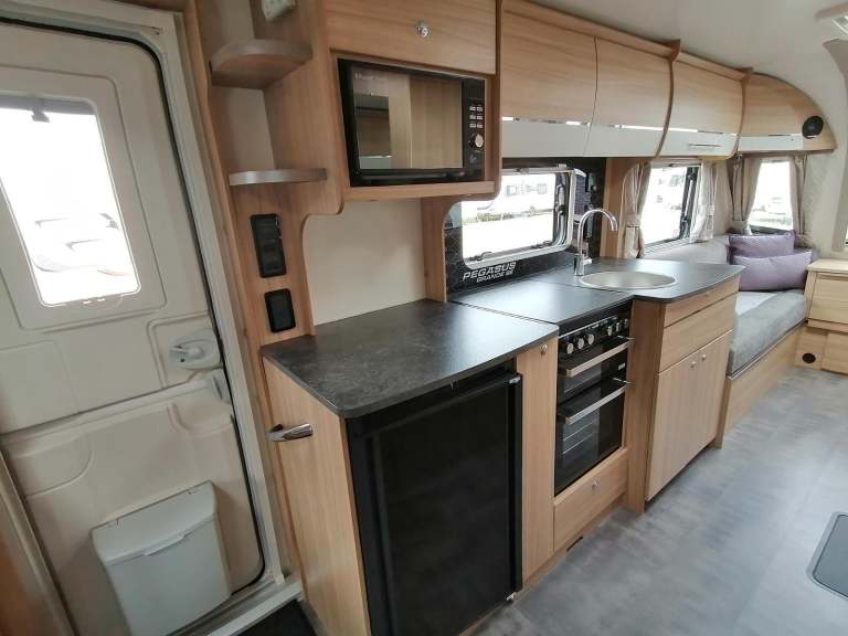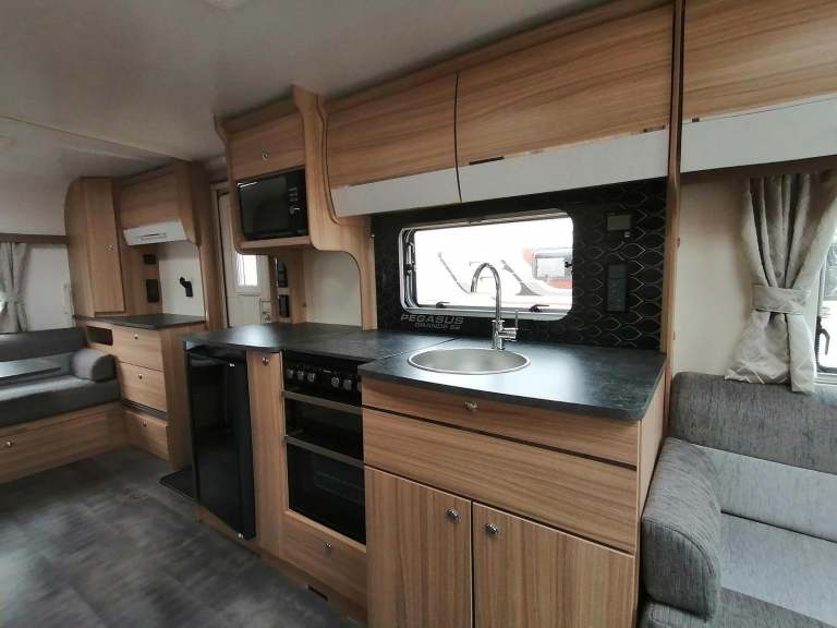 This used 2023 Bailey Pegasus is on display at our Swindon branch. This 5 berth caravan has an End dinette and a Lounge conversion. This caravan comes with a 12-month warranty. Full 100-point pre-delivery inspection, a motor mover make manouvering the caravan much easier, solar panel for keeping your leisure battery topped up, Alko automatic trailer control for better towing stability, a tracking system to locate if stolen, an external BBQ point so no need to connect a separate gas bottle, an external 240v plug socket for power in the awning. This caravan is also being supplied with a full starter kit worth over £500. This will include a Gas bottle, Gas pigtail, Leisure Battery, 25 Metre mains cable, Aquaroll, Wastemaster, Hitch Lock, Step and toilet chemicals. If you have all of these items we will supply £500 vouchers to spend in our shop instead. If you would like to hold this caravan for 72 hours we can take a refundable deposit of £500 subject to you viewing the caravan. If you require any further information on this caravan either call one of our sales team., Microwave, Solar Panel, External 240v, Gas Bbq Point, Tracking System, Alko Trailer Control, 12v Power, Alloy Wheels, Awning Light, Battery Charger, Blinds, Cassette Toilet, Double Glazing, Flyscreens, Free Standing Table, Fridge, Fridge Freezer, Galvanised Chassis, Heater, Heki Rooflight, Hitch Stabiliser, Hob, Hot And Cold Shower Unit, Insulated Panels, Loose Fit Carpets, Mains Electric, Mixer Taps, Oven, Pull Out Bed, Shower, Shower Unit, Skylight, Smoke Detectors, Spare Wheel, Tv Aerial, Central Heating, Blown Air