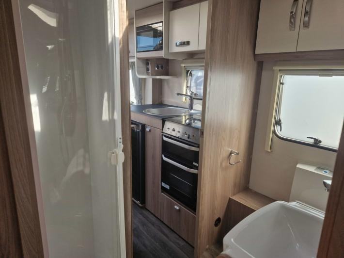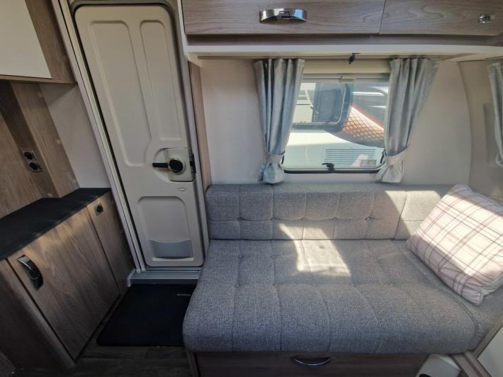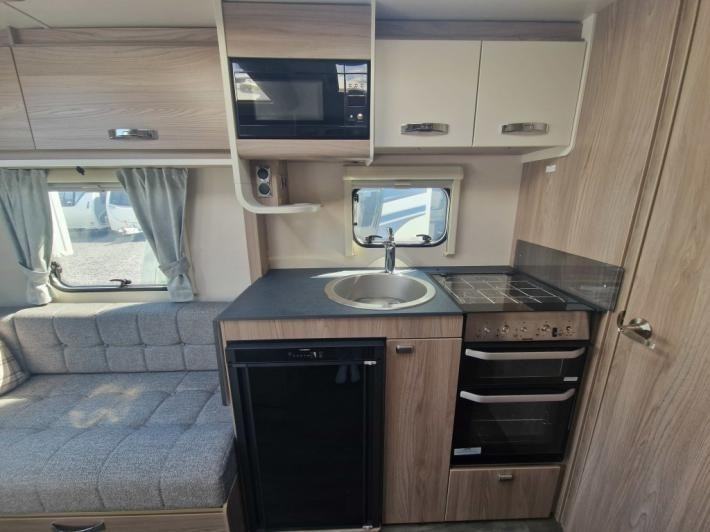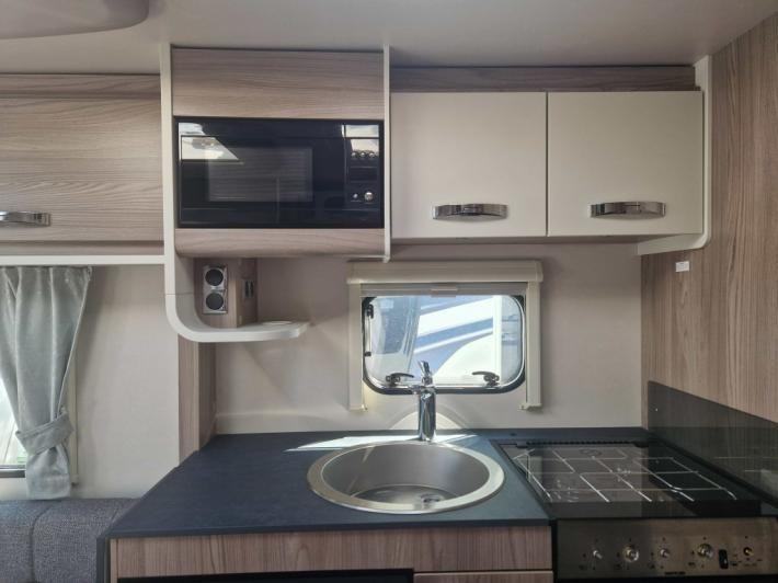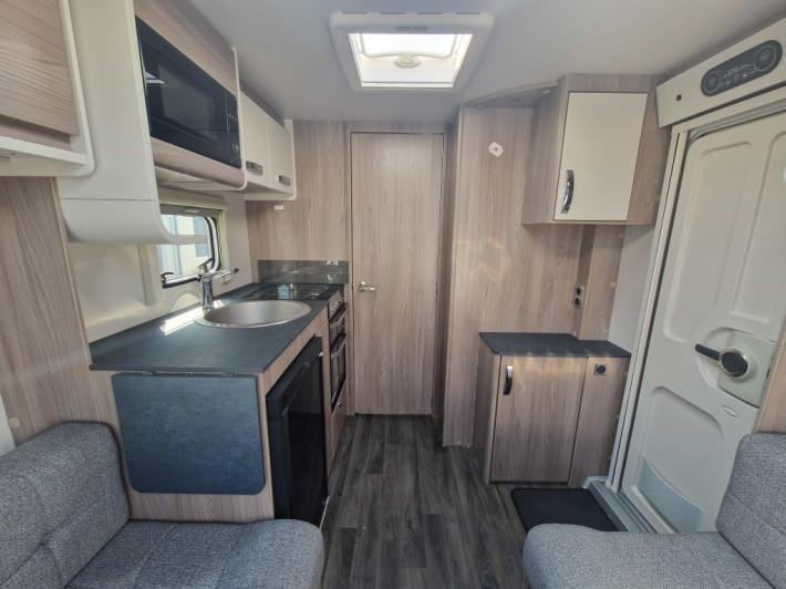 Fixed Bed,Fridge,Microwave,Oven,Mains electric,Water heater,Cassette toilet,Shower,Blinds,Fly screens,Door flyscreen,Stereo system,Battery charger,Alloy wheels,Spare wheel,TV Directional Aerial,GRP side panels,Sun roof,External 230v,12 month warranty,Part exchange welcome,Finance available subject to status written quotations available on request,Truma blown air heating