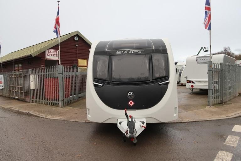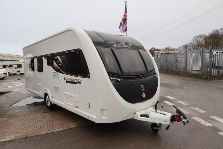 Immaculate 2023 Swift Celebrate 4EB with the popular fixed bed and full central washroom layout. Modern interior, spacious lounge, fully equipped kitchen (oven, grill, hob, microwave, fridge/freezer), and excellent storage throughout. Heating and hot water system, LED lighting, alloy wheels, and external points (if fitted). Lightly used, smoke- and pet-free, ready to tow.