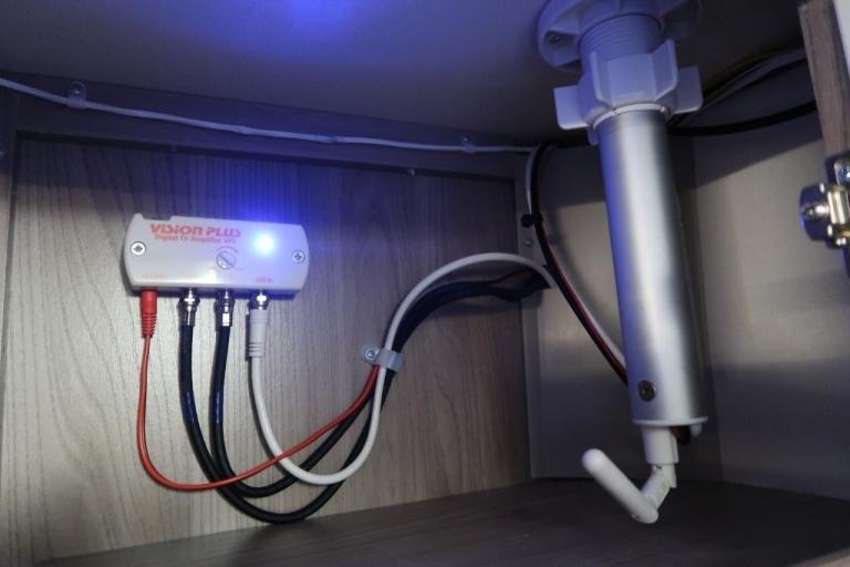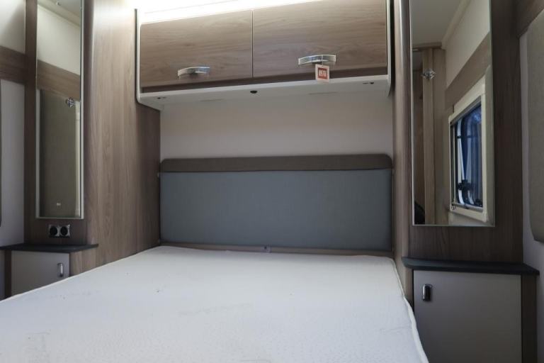 Alloy Wheels, ATC, Battery Charger, Blinds, Cassette Toilet, Door Flyscreen, Double Glazing, Fixed Island Bed, Flyscreen, Freezer, Fridge, Grill, Heater, Loose Fit Carpets, Mains Electric, Microwave, Motor Mover, Oven, Rooflight, Separate Toilet & Shower, Shower, Solar Panels, Stabiliser, Sunroof, Water Heater.