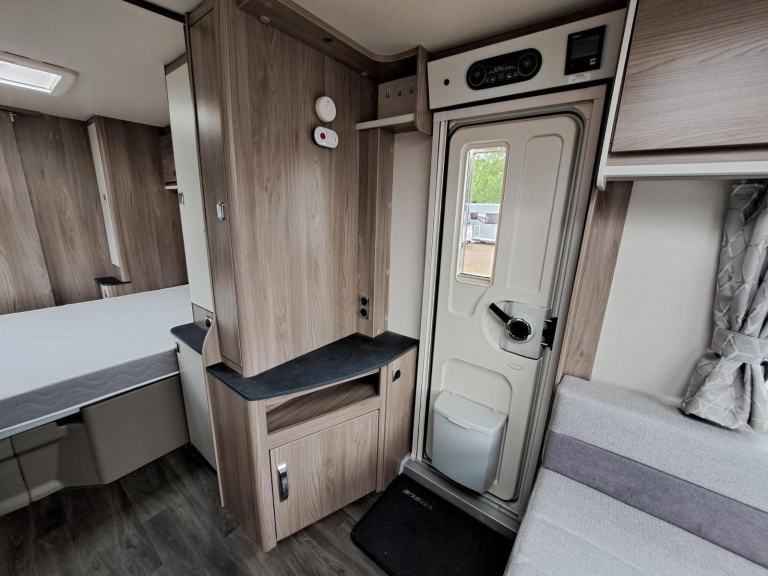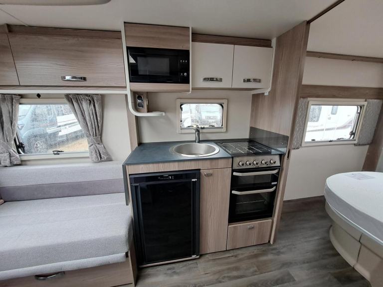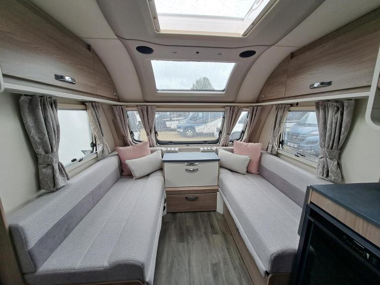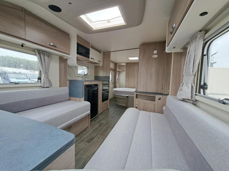 This used 2023 Swift Vogue is on display at our Swindon branch. This 4 berth caravan has an End washroom and a Fixed island bed. This caravan comes with a 12-month warranty. Full 100-point pre-delivery inspection, a motor mover make manouvering the caravan much easier, solar panel for keeping your leisure battery topped up, an alarm system to reduce insurance premiums and to give you peace of mind, an external BBQ point so no need to connect a separate gas bottle, an external 240v plug socket for power in the awning. This caravan is also being supplied with a full starter kit worth over £500. This will include a Gas bottle, Gas pigtail, Leisure Battery, 25 Metre mains cable, Aquaroll, Wastemaster, Hitch Lock and Step. If you have all of these items we will supply £500 vouchers to spend in our shop instead. If you would like to hold this caravan for 72 hours we can take a refundable deposit of £500 subject to you viewing the caravan. If you require any further information on this caravan either call one of our sales team., Alarm, Microwave, Motor Mover, Solar Panel, External 240v, Gas Bbq Point, 12v Power, Alloy Wheels, Awning Light, Battery Charger, Blinds, Cassette Toilet, Double Glazing, Flyscreens, Free Standing Table, Fridge, Fridge Freezer, Galvanised Chassis, Heater, Heki Rooflight, Hitch Stabiliser, Hob, Hot And Cold Shower Unit, Insulated Panels, Loose Fit Carpets, Mains Electric, Mixer Taps, Oven, Pull Out Bed, Shower, Shower Unit, Skylight, Smoke Detectors, Spare Wheel, Tv Aerial, Central Heating, Blown Air