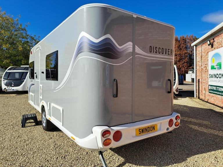 This used 2024 Bailey Discovery is on display at our Swindon branch. This 4 berth caravan has an End washroom and a French bed. This caravan comes with a 12-month warranty. Full 100-point pre-delivery inspection. This caravan is also being supplied with a full starter kit worth over £500. This will include a Gas bottle, Gas pigtail, Leisure Battery, 25 Metre mains cable, Aquaroll, Wastemaster, Hitch Lock and Step. If you have all of these items we will supply £500 vouchers to spend in our shop instead. If you would like to hold this Bailey Discovery caravan for 72 hours we can take a refundable deposit of £500 subject to you viewing the caravan. If you require any further information on this caravan either call one of our sales team., 12v Power, Alloy Wheels, Awning Light, Battery Charger, Blinds, Cassette Toilet, Double Glazing, Flyscreens, Free Standing Table, Fridge, Fridge Freezer, Galvanised Chassis, Heater, Heki Rooflight, Hitch Stabiliser, Hob, Hot And Cold Shower Unit, Insulated Panels, Loose Fit Carpets, Mains Electric, Mixer Taps, Oven, Pull Out Bed, Shower, Shower Unit, Skylight, Smoke Detectors, Spare Wheel, Tv Aerial, Central Heating, Blown Air