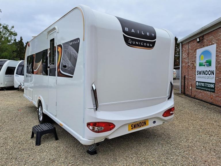 This used 2024 Bailey Unicorn is on display at our Swindon branch. This 2 berth caravan has an End washroom and a Lounge conversion. This caravan comes with a 12-month warranty. Full 100-point pre-delivery inspection, a motor mover make manouvering the caravan much easier, solar panel for keeping your leisure battery topped up, Alko automatic trailer control for better towing stability, an alarm system to reduce insurance premiums and to give you peace of mind, an external BBQ point so no need to connect a separate gas bottle, an external 240v plug socket for power in the awning. This caravan is also being supplied with a full starter kit worth over £500. This will include a Gas bottle, Gas pigtail, Leisure Battery, 25 Metre mains cable, Aquaroll, Wastemaster, Hitch Lock and Step. If you have all of these items we will supply £500 vouchers to spend in our shop instead. If you would like to hold this Bailey Unicorn caravan for 72 hours we can take a refundable deposit of £500 subject to you viewing the caravan. If you require any further information on this caravan either call one of our sales team., Alarm, Microwave, Motor Mover, Solar Panel, External 240v, Gas Bbq Point, Alko Trailer Control, 12v Power, Alloy Wheels, Awning Light, Battery Charger, Blinds, Cassette Toilet, Double Glazing, Flyscreens, Free Standing Table, Fridge, Fridge Freezer, Galvanised Chassis, Heater, Heki Rooflight, Hitch Stabiliser, Hob, Hot And Cold Shower Unit, Insulated Panels, Loose Fit Carpets, Mains Electric, Mixer Taps, Oven, Pull Out Bed, Shower, Shower Unit, Skylight, Smoke Detectors, Spare Wheel, Tv Aerial, Central Heating, Alde Wet