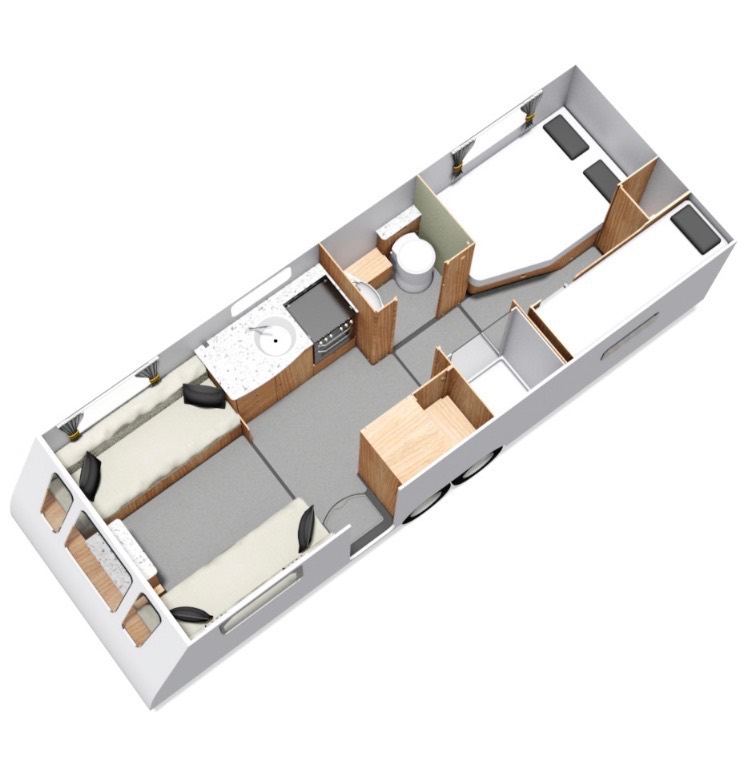 Lots of overhead storage and good size floor to ceiling wardrobe.