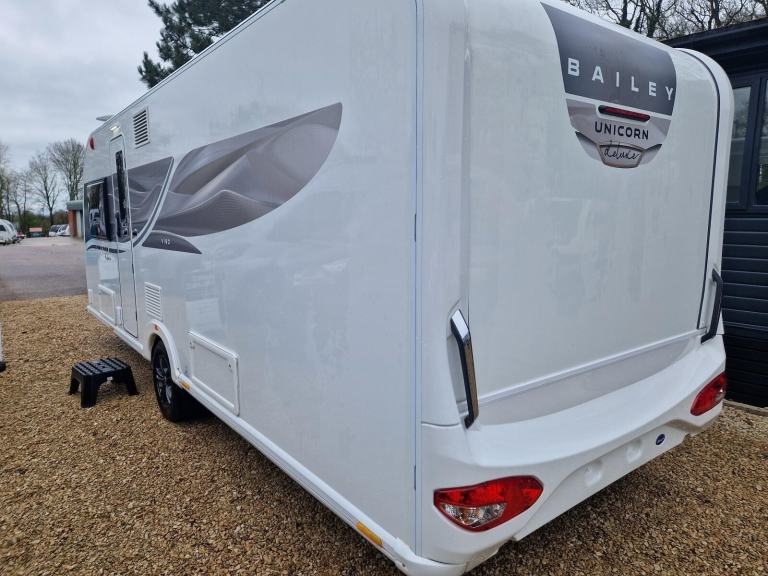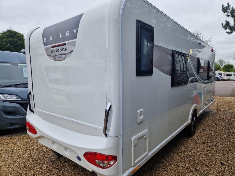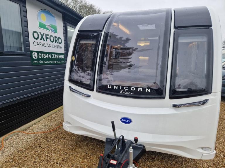 This used 2025 Bailey Unicorn is on display at our Oxford branch. This 4 berth caravan has an End washroom and a Fixed island bed. This caravan comes with a 12-month warranty. Full 100-point pre-delivery inspection, solar panel for keeping your leisure battery topped up, Alko automatic trailer control for better towing stability, a tracking system to locate if stolen, an external BBQ point so no need to connect a separate gas bottle, an external 240v plug socket for power in the awning. This caravan is also being supplied with a full starter kit worth over £500. This will include a Gas bottle, Gas pigtail, Leisure Battery, 25 Metre mains cable, Aquaroll, Wastemaster, Hitch Lock and Step. If you have all of these items we will supply £500 vouchers to spend in our shop instead. If you would like to hold this Bailey Unicorn caravan for 72 hours we can take a refundable deposit of £500 subject to you viewing the caravan. If you require any further information on this caravan either call one of our sales team., Microwave, Solar Panel, External 240v, Gas Bbq Point, Tracking System, Alko Trailer Control, 12v Power, Alloy Wheels, Awning Light, Battery Charger, Blinds, Cassette Toilet, Double Glazing, Flyscreens, Free Standing Table, Fridge, Fridge Freezer, Galvanised Chassis, Heater, Heki Rooflight, Hitch Stabiliser, Hob, Hot And Cold Shower Unit, Insulated Panels, Loose Fit Carpets, Mains Electric, Mixer Taps, Oven, Pull Out Bed, Shower, Shower Unit, Skylight, Smoke Detectors, Spare Wheel, Tv Aerial, Central Heating, Alde Wet