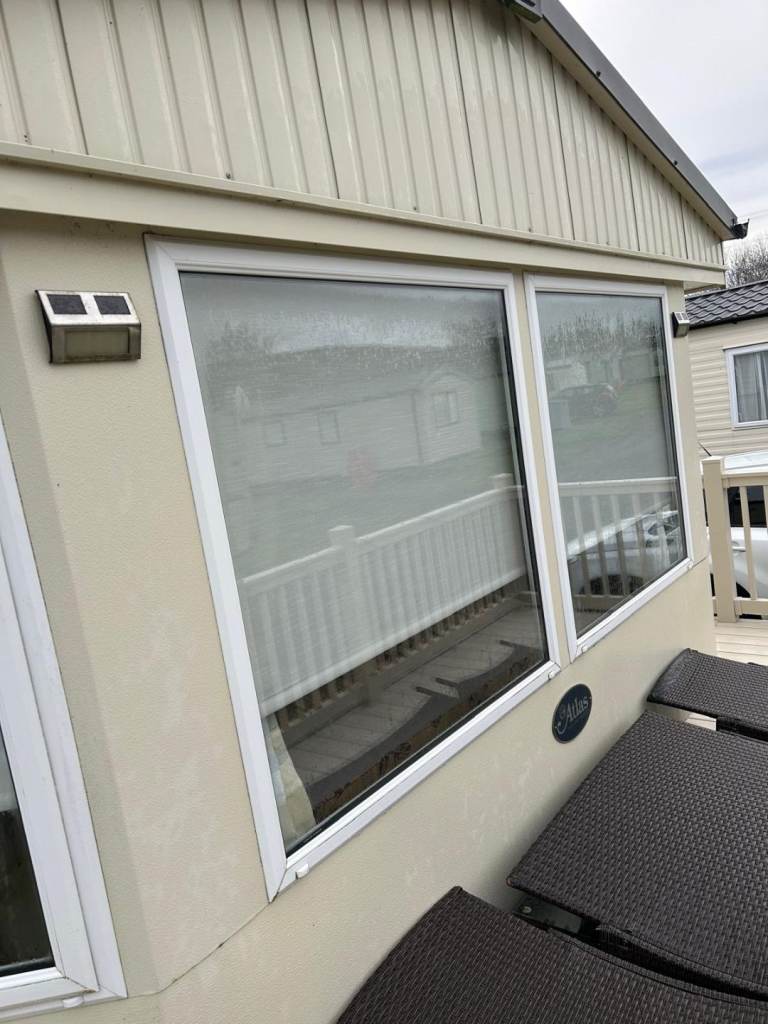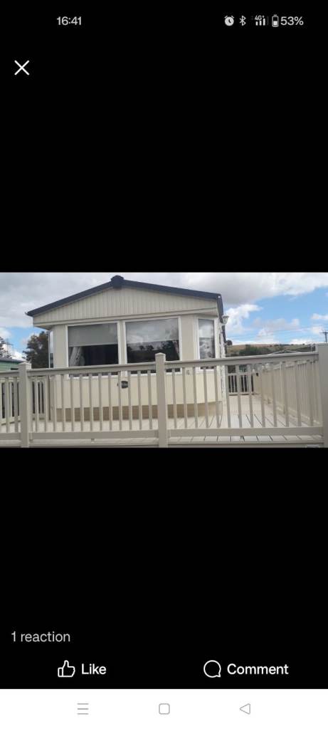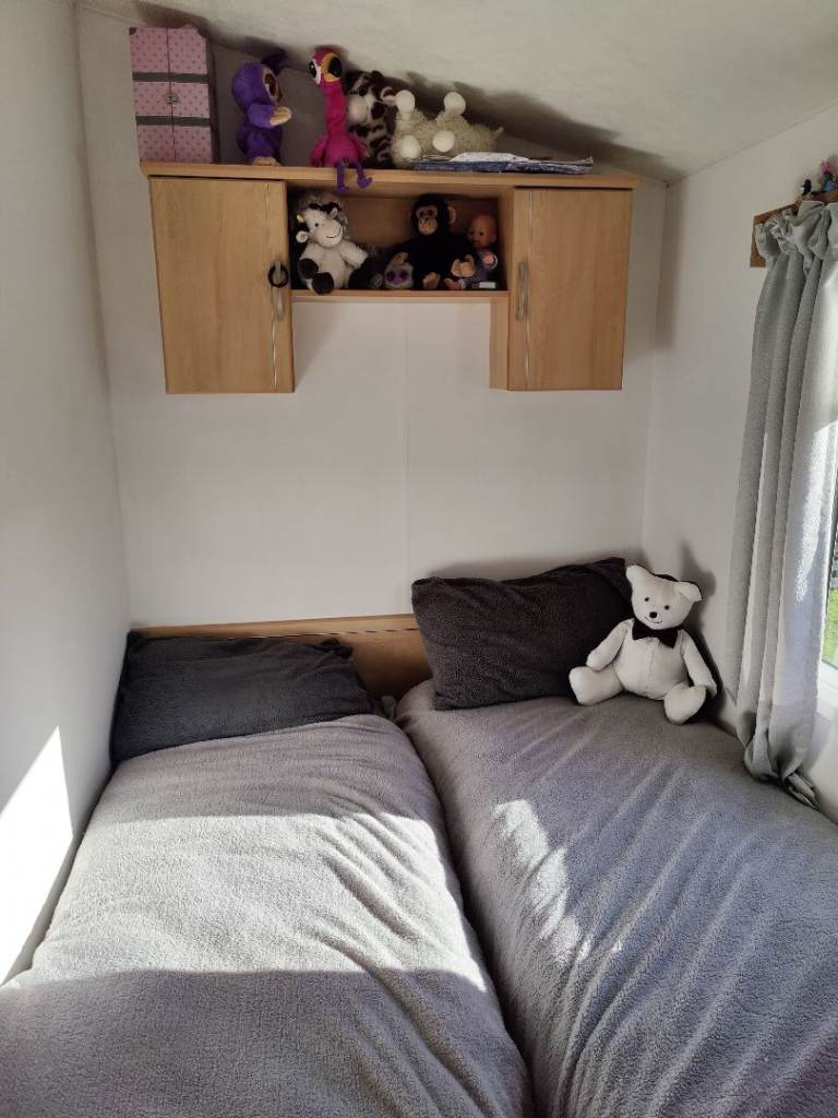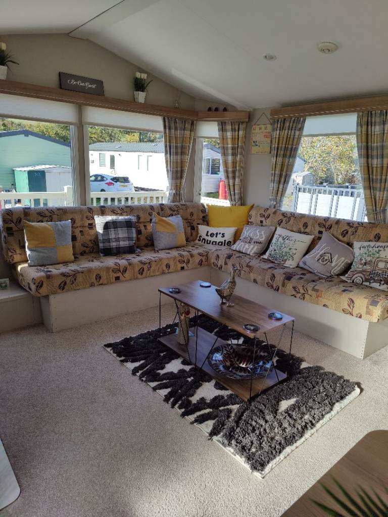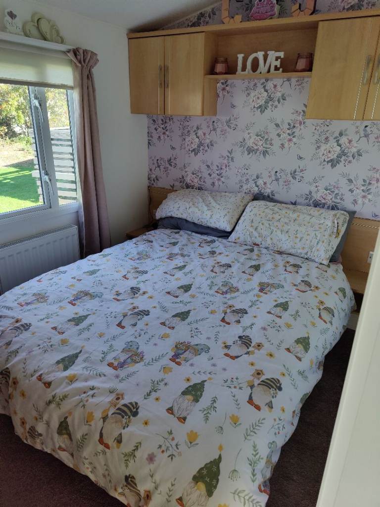 Comes complete with wrap around plastic decking with a gate,outside metal storage shed. Central heating, Double glazing, gas Oven, Gas fire, Fridge freezer ,microwave all included.The caravan is all set up ready to go we will leave what ever you want ie pots pans plates bedding ect. Two double beds and two single beds.Shower cubicle.