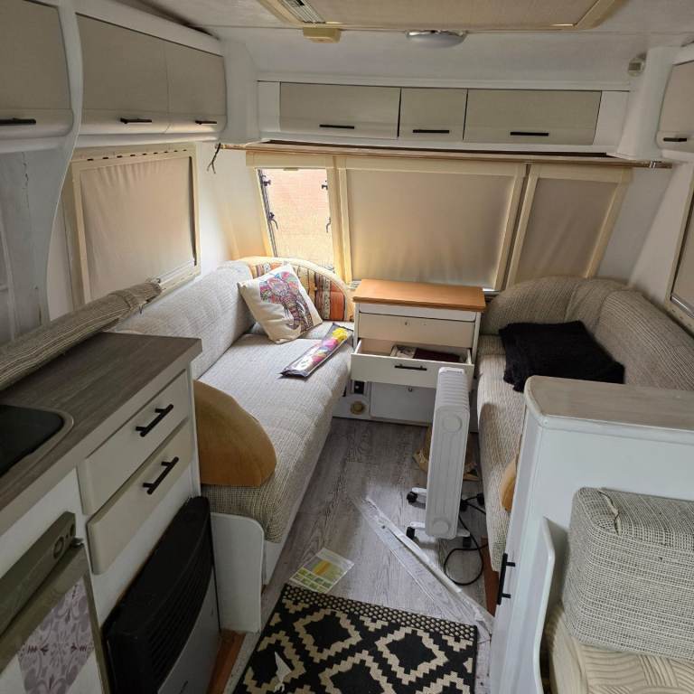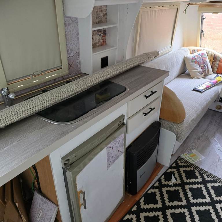 Selling our caravan as we never have time to use it unfortunately. Updated upholstery and painted inside to give a more modern look. Removed gas oven and used an air fryer and electric hob so much easier and better for storage.