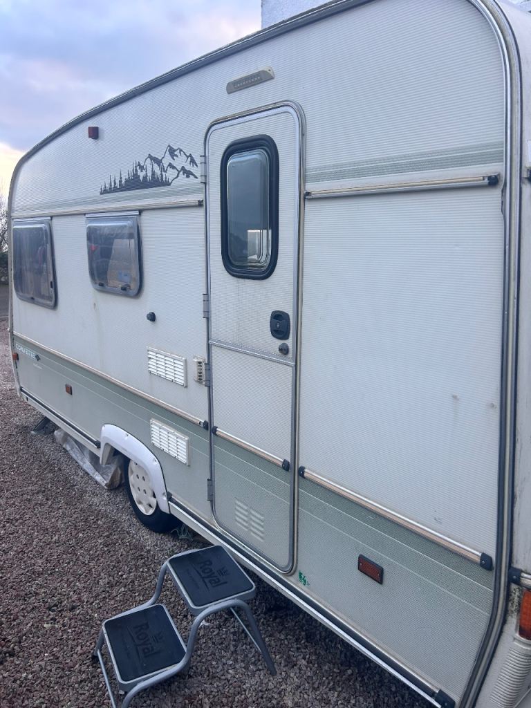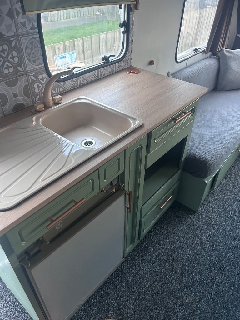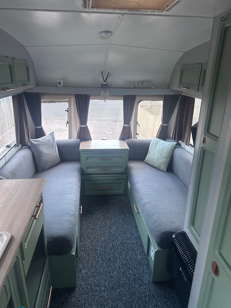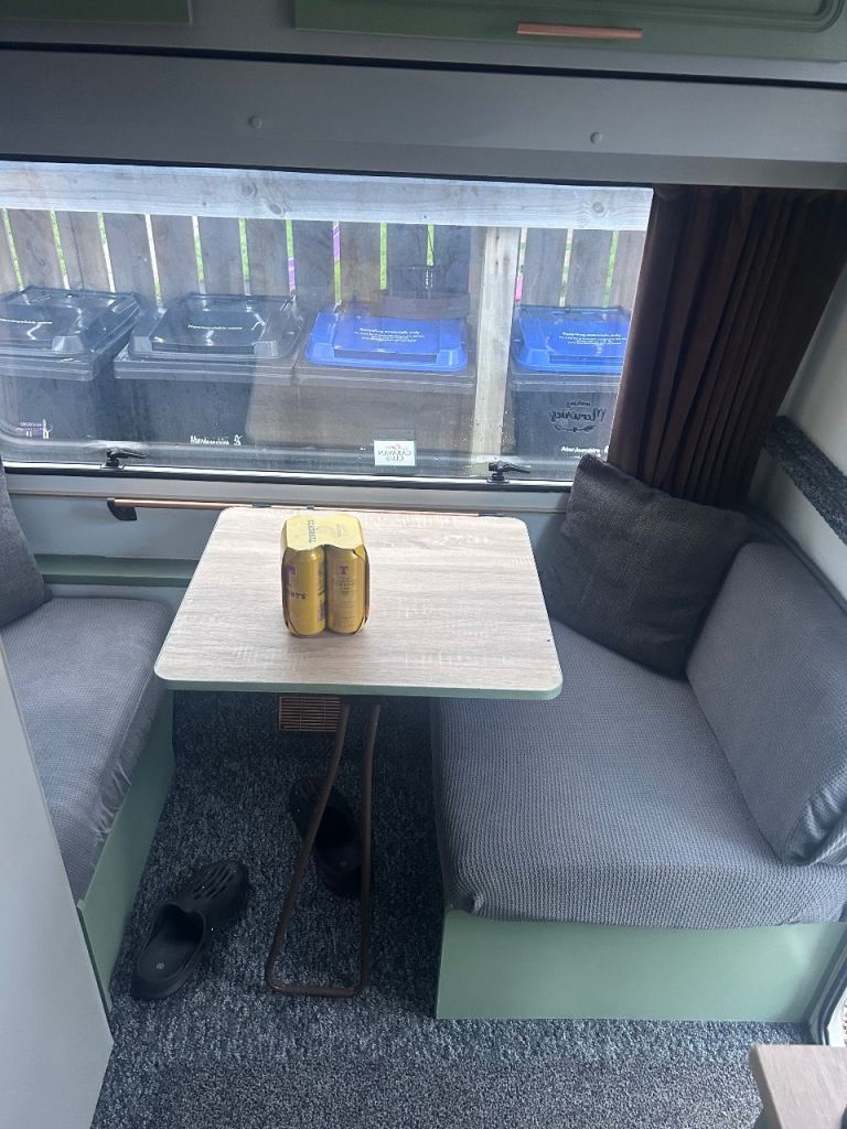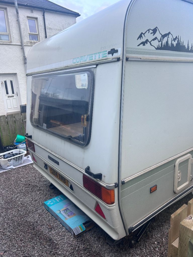We used this as a first time van done us well but not big enough ideal for family of 4 . Front seating turns into big double .rear dinette turns into bunk beds . Only works off electric . Fridge , radiator microbes all work fine new battery . Last September was £120 Has all electric hook up watt barrels , hoses . Full size awning and caravan cover . Tows easy
