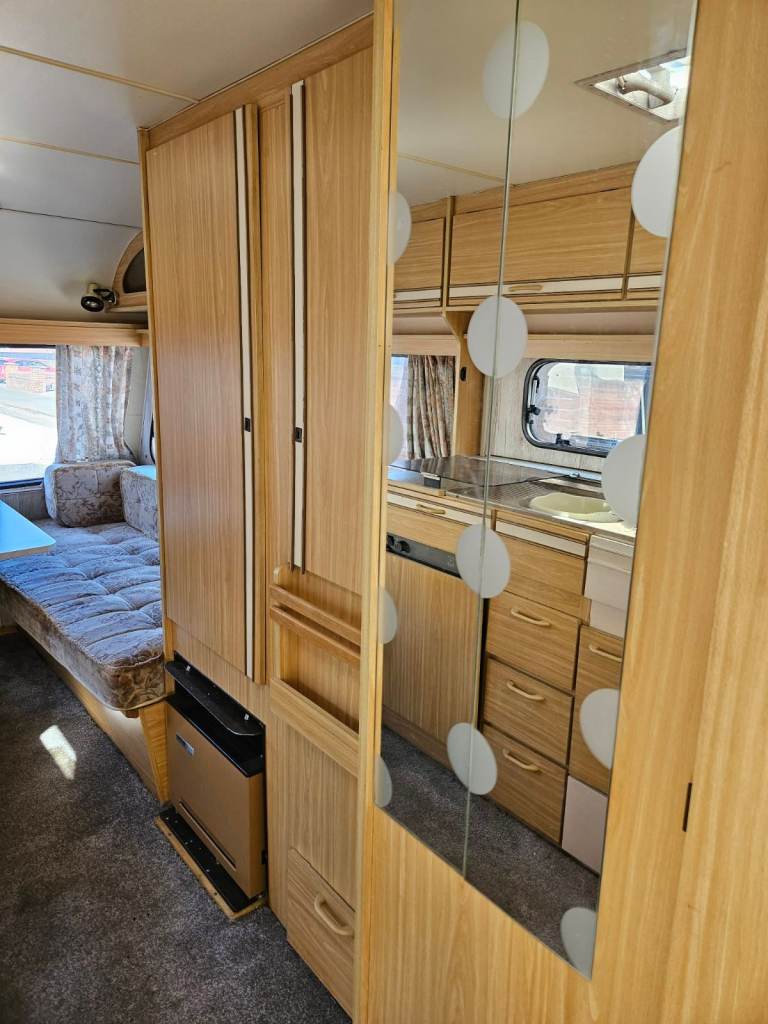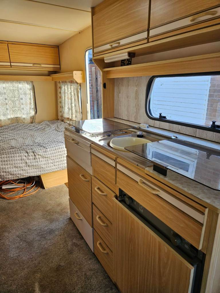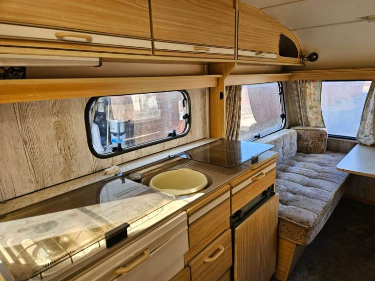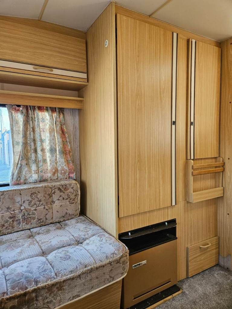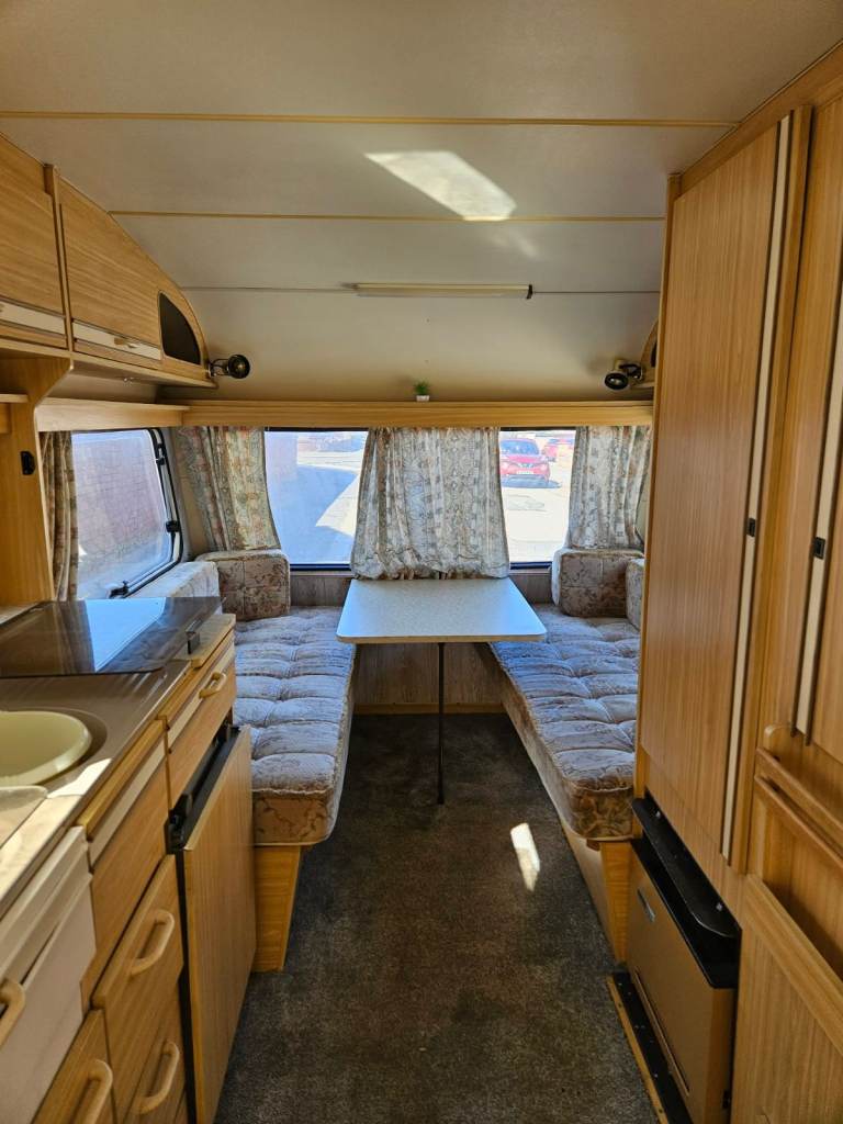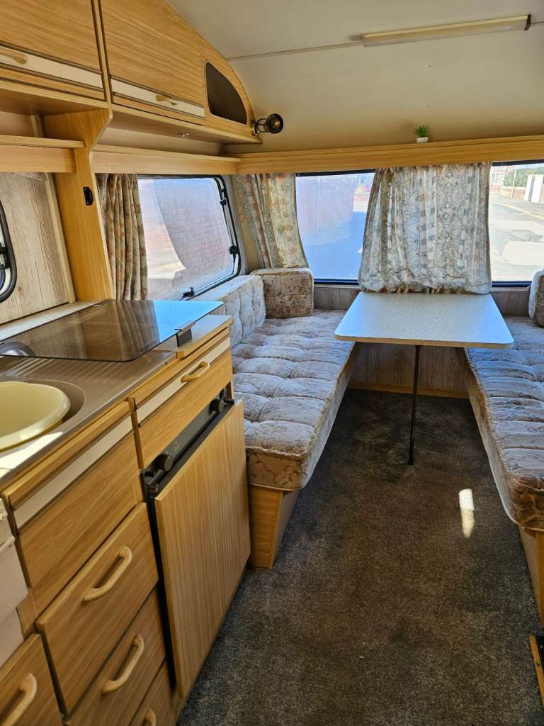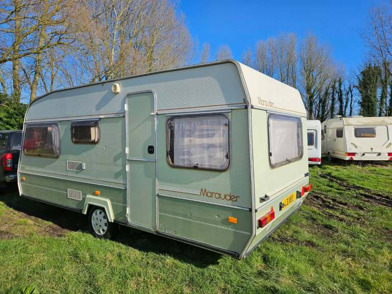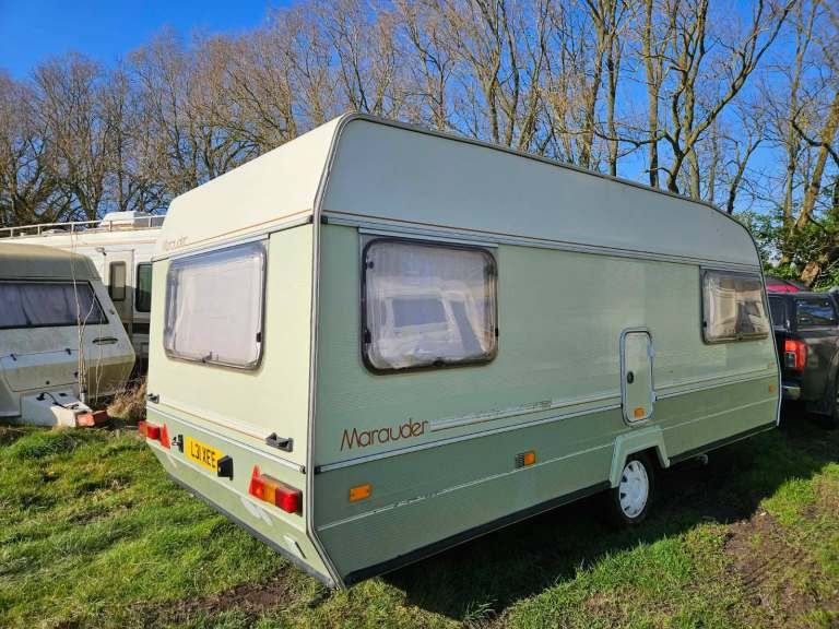 Here for sale is a four berth Marauder caravan, just out of storage , will need to be checked over ,,,this is a fixer upper type caravan , comes with step,waste masters , hook up lead, toaster , kettle , microwave, the seating to the rear is a permanent bed with a foam mattress , thank you