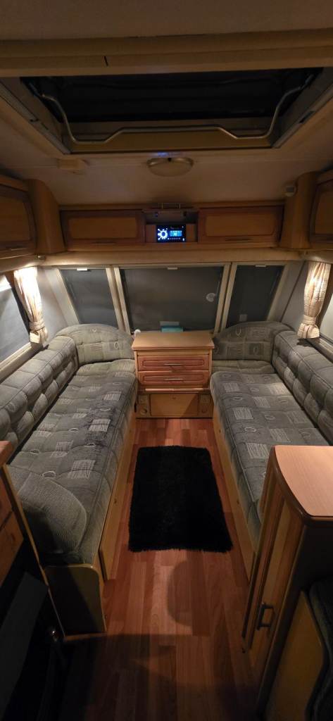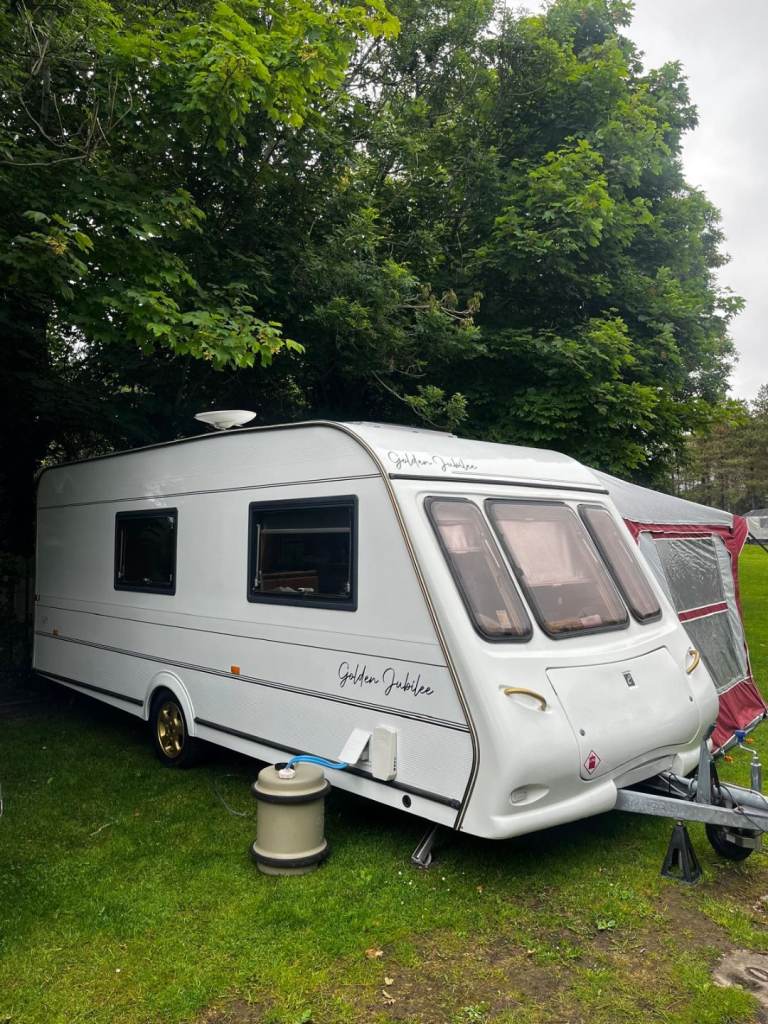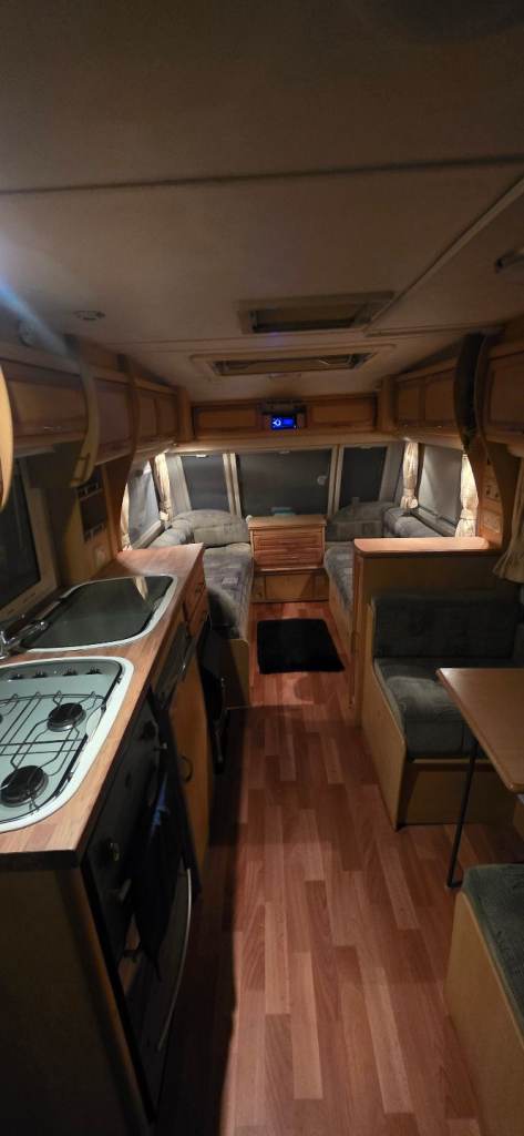 4 birth touring caravan with end bathroom, shower, toilet and wash hand basin. Little used and in great condition. Comes with full size caravan awning, Bluetooth radio, Tv, water carrier, waste water container, propane gas canisters. Reddy to go