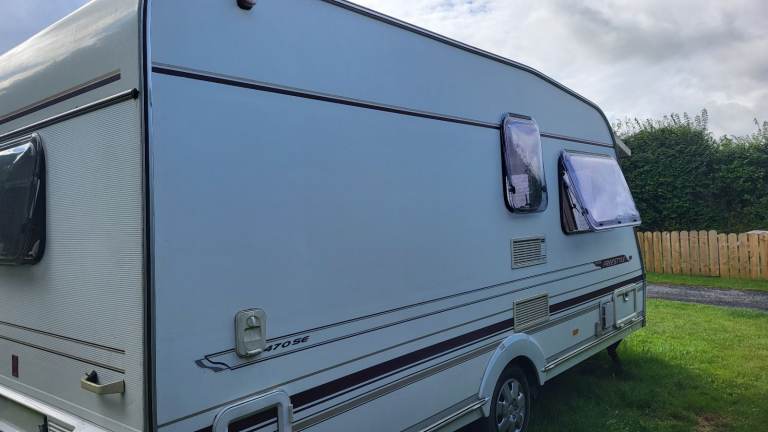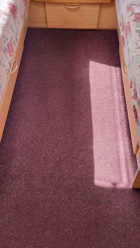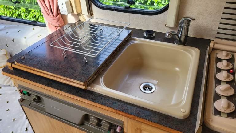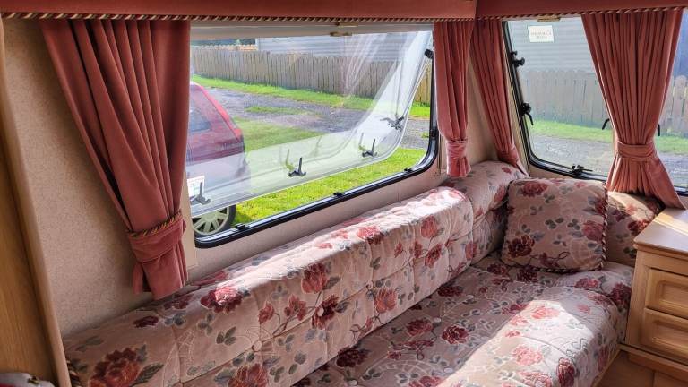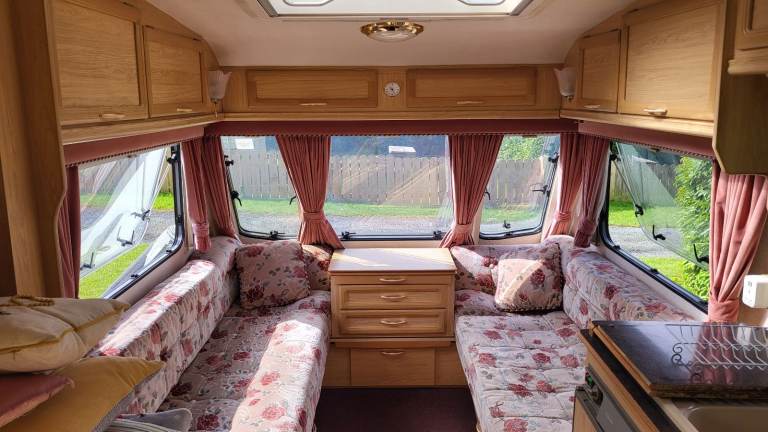 'Rosie' is in really good order. We have looked after her and done the odd cosmetic repair here and there. The most we have had to do is replace a switch in the kitchen tap and buy a new cannister for the toilet. She comes with everything you need - a good battery, aquaroll waste and water tank. She has a motor mover fitted but we have only used it once since we have been there so if you visit we can check it out when you are here, I'm sure it's fine. She is very dry and the window seals all in good order. No leaks at all. The floor is solid. The seating cushions are in very good order and the carpet also. The two front seats convert into a very comfortable double bed with ample storage underneath for duvets, pillows etc etc.