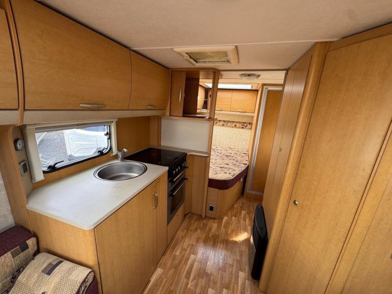 For sale is a 2005 Abbey Freestyle 540 caravan, perfect for a family getaway with its 4-berth capacity. This spacious and well-maintained caravan offers a comfortable and practical interior, with a well-equipped kitchen and a cozy dining area that converts into a double bed. The front lounge area also converts into a second double bed, providing ample sleeping space for all. The bathroom includes a practical shower, and toilet ensuring convenience on the road. With its sturdy build and robust furnishings, this caravan is ideal for those seeking a reliable and comfortable travel option. In very good condition for its age!