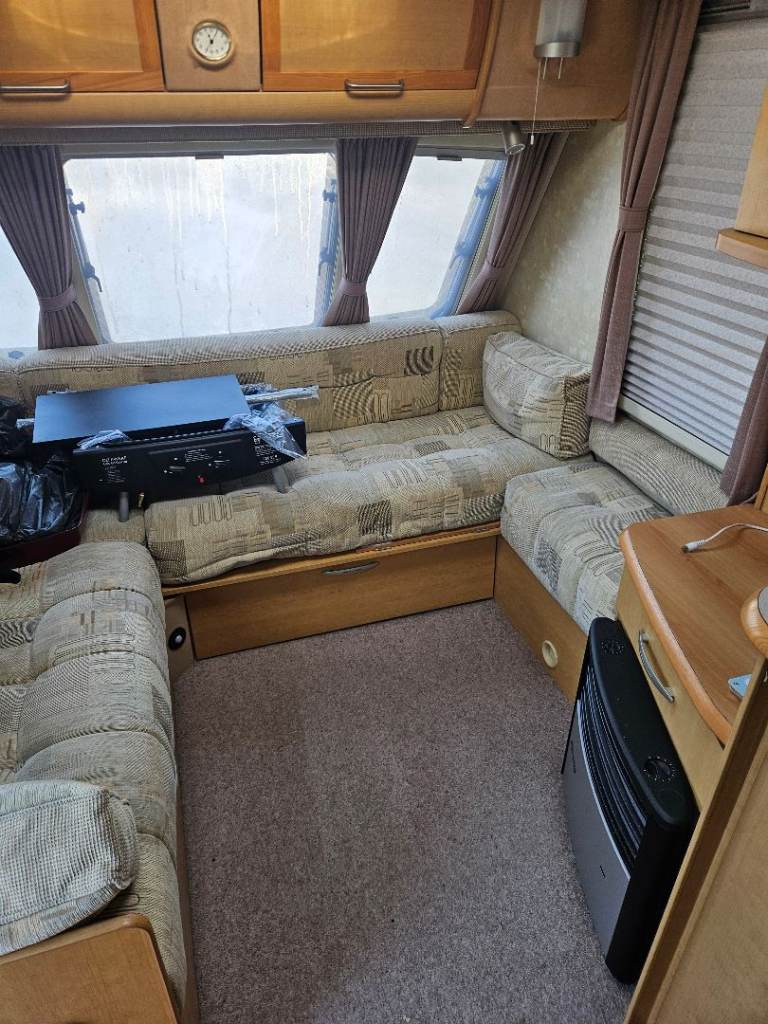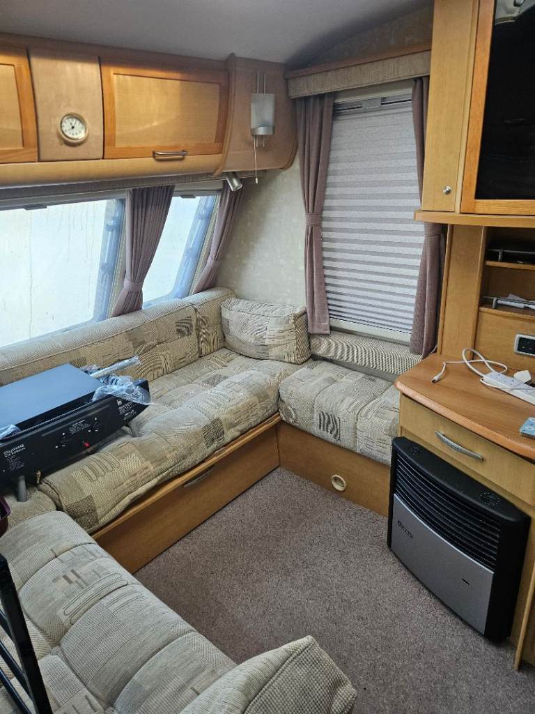 Although it is carpeted inside, the loose fitting carpets are also under the bed. It is on a seasonal pitch in Paignton and if the buyer would like to keep it there, subject to agreement with the site, the pitch fees are £2950 per year including winter storage. just have to pay electric on top.