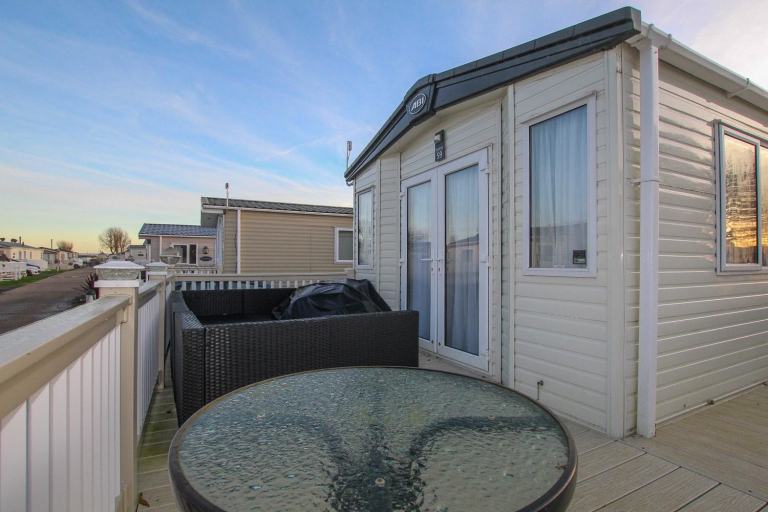 The caravan is a 3 bedroom (8 berth) model and has double glazing & central heating, a wraparound decking area, and private parking. It’s sited on The Meadows area of the park which is mainly owners and is away from the main entertainment area. Owners can use the park for 50 weeks of the year (only closed for two weeks in February) so is ideal for anyone looking to use their caravan throughout the year.