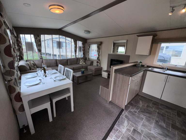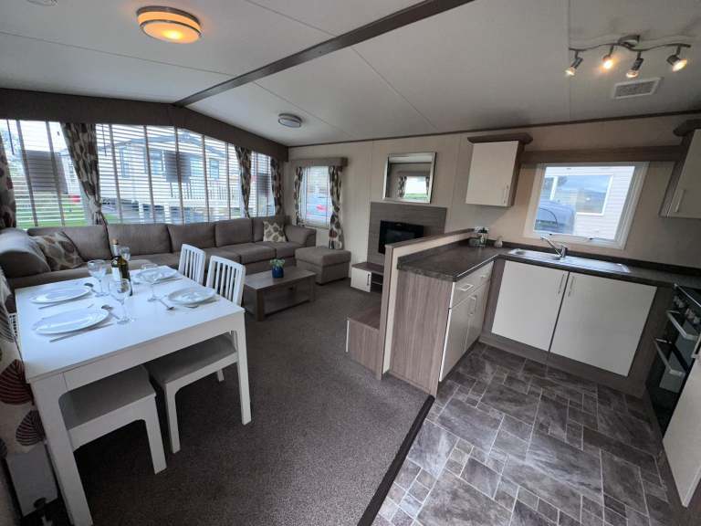 The ABI Malvern is double-glazed & gas central heated. It offers open-plan living with a large L-shaped deep sofa perfect for cozy nights in front of the TV with the family. Large front windows that let plenty of natural light bringing the outdoors in. The C Shaped kitchen has ample work space and storage with an integrated fridge/freezer and a large cupboard to store coats and shoes.