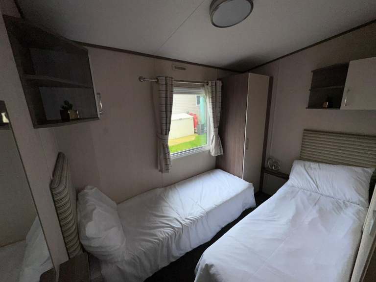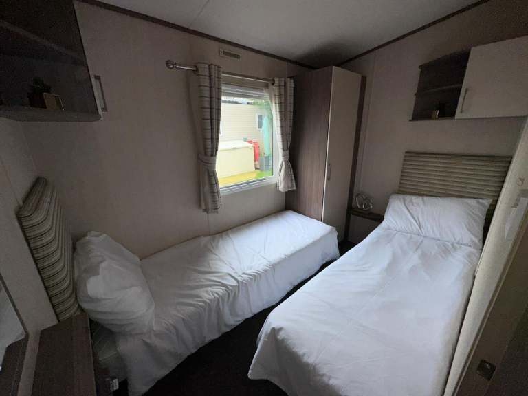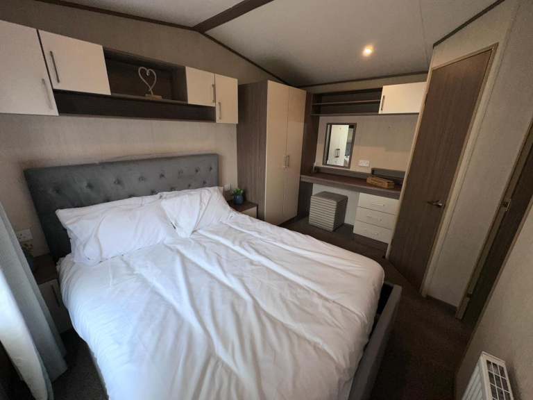 To the back end of the holiday home consists of two large bedrooms, the second bedroom with two single free-standing beds and a wardrobe. The large master bedroom has plenty of space with a double bed and lots of wardrobe space not forgetting a lovely dressing area, off the master there is also an en-suite toilet. From the front to the back, the Malvern is a classic design and a must for anyone looking for their first cozy home from home.