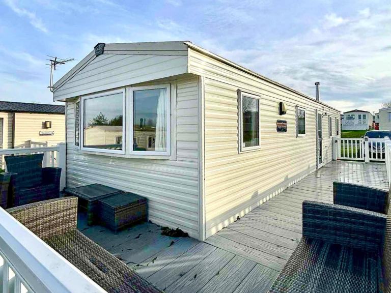 Posting for 7+ yearsABI New Horizon 2021 static caravan at Haven Allhallows, Kent. 3 bedrooms. Deck