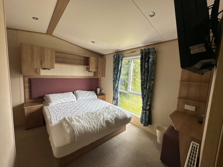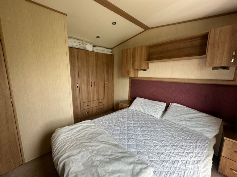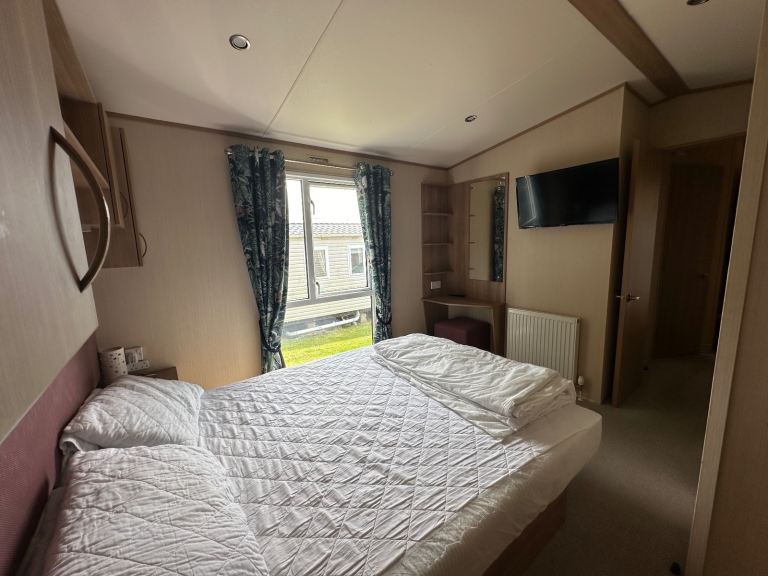 - King master bedroom (with new mattress purchased the end of last season) with bath en-suite (rare for a lot of caravans!) and wall mounted TV/DVD player