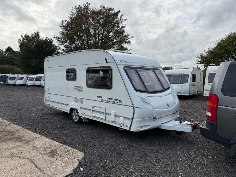 Ace Celebration 480 2 berth 2006 caravan,in good Condition inside and out. This caravan is fully ready to take camping, it has lots of features and extras what you would expect from a high spec caravan such as this. It includes: hot and cold water, full central heating, full screens and blinds, full oven and grill, three-way fridge/freezer, 240–12 V electricity, HEKI rooflight, Alko Antisway towbar and much more.This caravan comes with a full