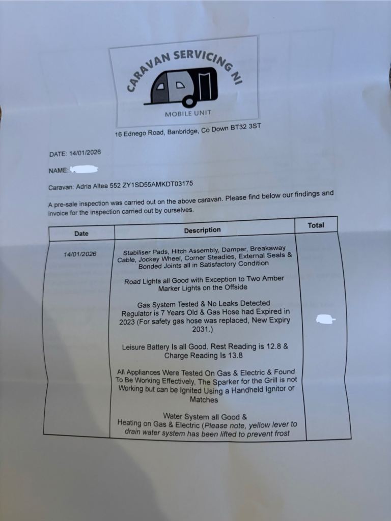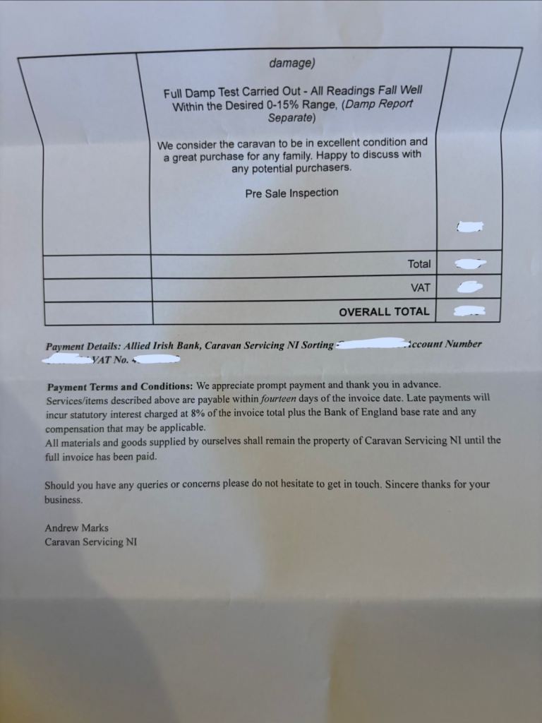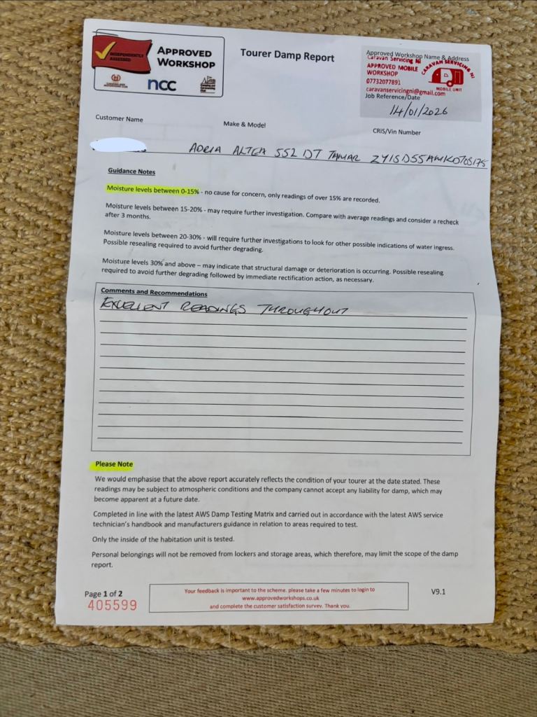 Pre-sale inspection and damp report from Caravan Servicing NI to give peace of mind (photos attached)