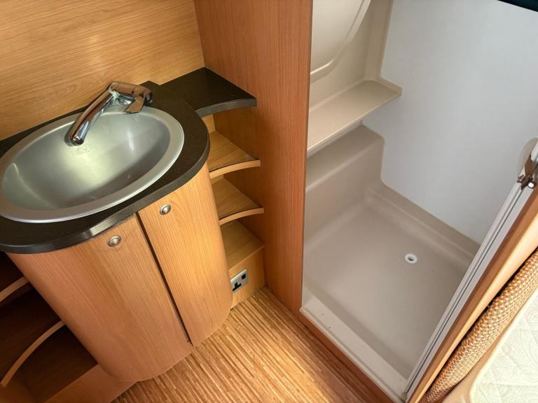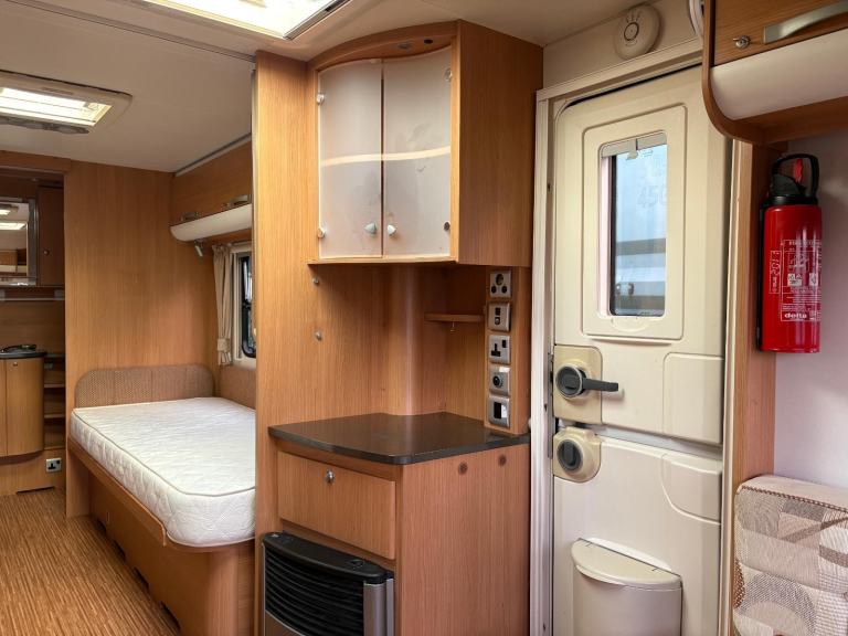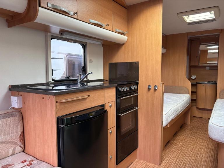 HOT/COLD WATER, 3 WAY FRIDGE, 240V ELECTRICS, HOB/GRILL, OVEN, FIRE, ALDE CENTRAL HEATING, FLYSCREENS/BLINDS,TV AERIEL, SKYLIGHT, STABILISER HITCH, MOTORMOVER