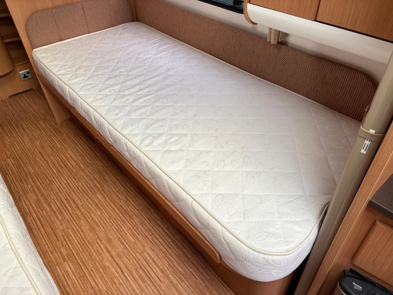 FEATURES SEATING AREA AT THE FRONT THAT CONVERTS INTO A DOUBLE BED, CENTRE KITCHEN, FIXED SINGLE BEDS AND SPACIOUS END WASHROOM WITH SHOWER AND TOILET