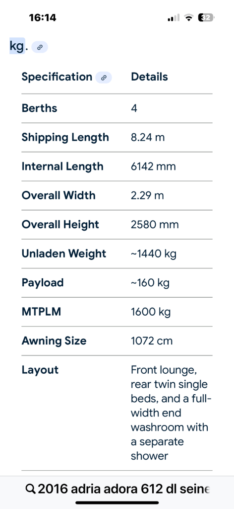 Posting for 12+ yearsAdria Adora 612dl Seine 4 berth..2016