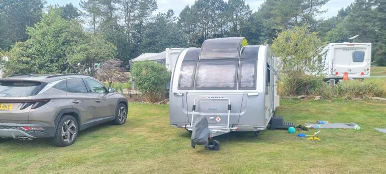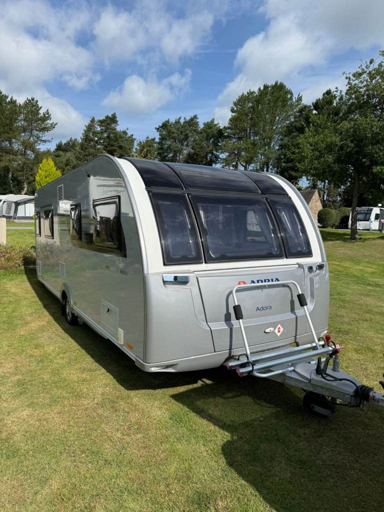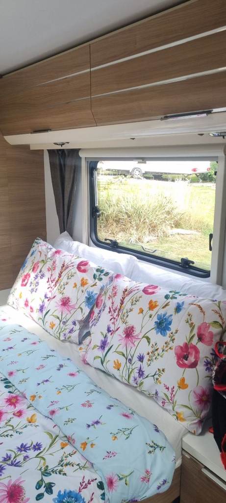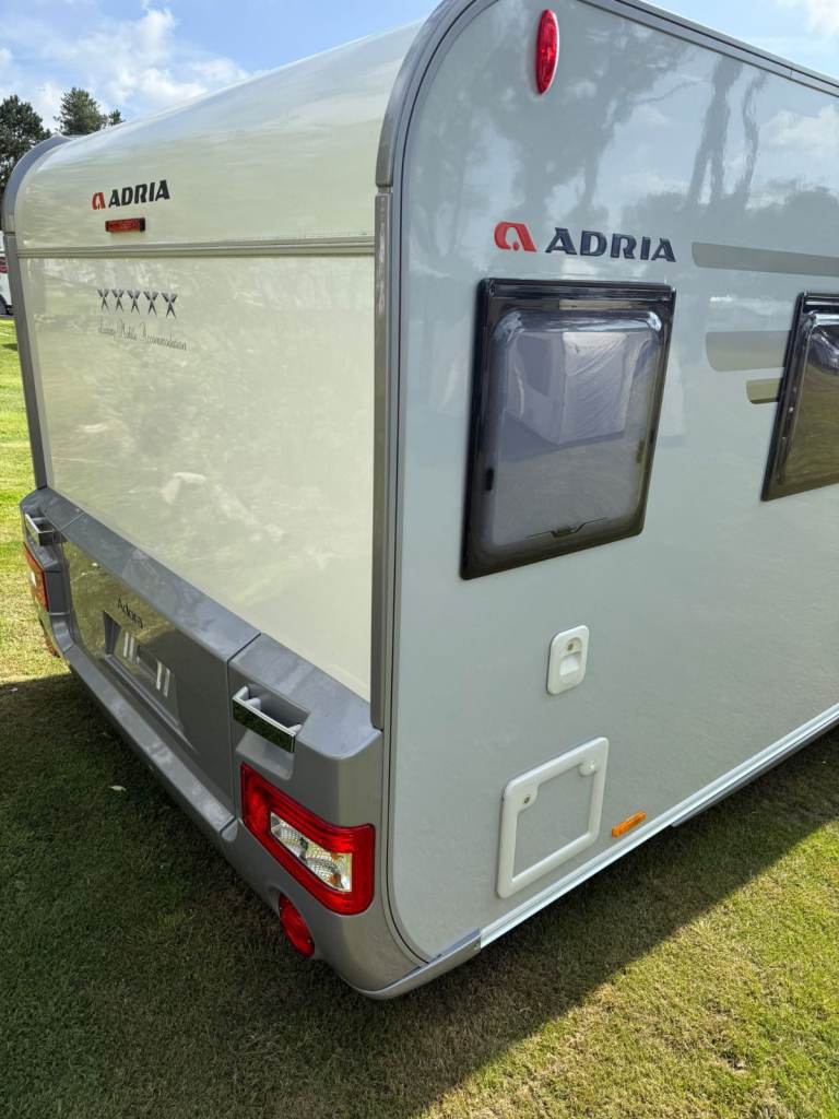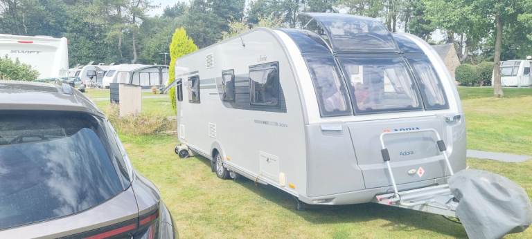Adria Adora 613 Isonzo 2019, 4 berth with fixed bed. These vans are 8 foot wide, so plenty of leg room. Fabulous condition and quality, comes with a host of extras. Has had suspension fitted, which makes towing so much better also had motor mover and jacking points fitted. Comes with water butt's and 2 new water pumps. New carpets just fitted and also comes with brand new caravan cover. Their is a nearly new awning aswell used only once, comes equipped with solar panel. Their is a full sized fridge freezer, oven, hob and hardly used built in microwave. All in all a brilliant caravan waiting for its next family to take on new adventures.