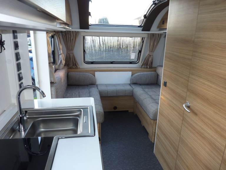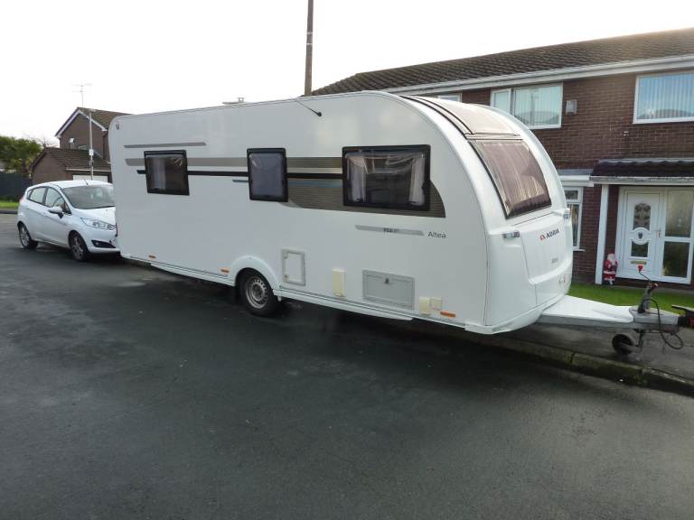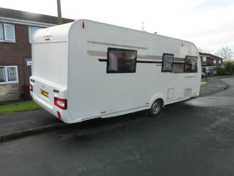 Adria Altea Trent 2018 FIXED ISLAND BED in stunning condition through out and priced to sell. U Shape lounge at the front which converts into a double bed. Centre kitchen with oven, hob, 3 way fridge. Opposite is a centre bathroom with, cassette toilet, drop down sink and shower. There is also a large double wardrobe. At the rear is a large FIXED Island bed with storage below. There is plenty of over head cupboard space and wardrobes to the side of the bed. There is also a sliding door to make an end bedroom.