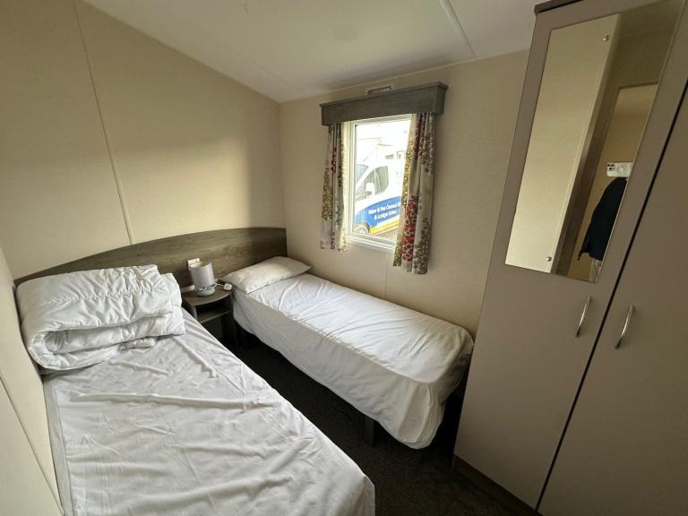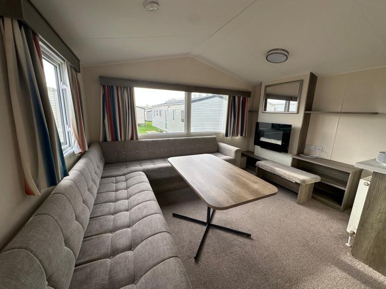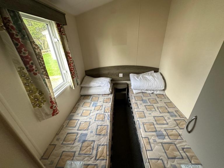 For sale: Atlas Moonstone 36x12 static caravan in good condition throughout. Spacious 3-bedroom layout with double glazing and central heating, making it ideal for year-round use. Features a master bedroom, two twin rooms, a separate shower room, plus a second WC. Bright, open-plan living area with a fitted kitchen, dining space, and a generous lounge.