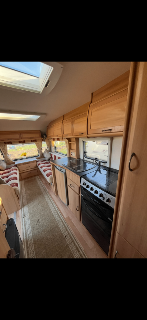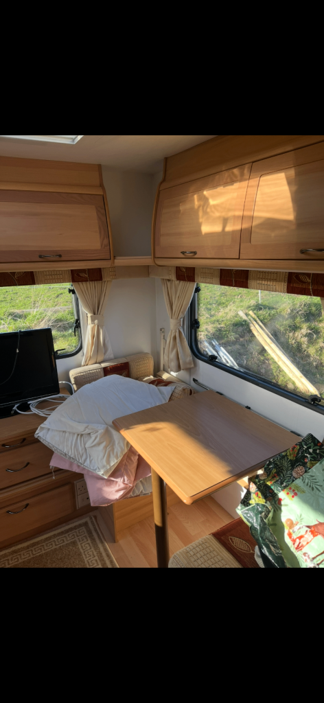 2007 Avondale argente 6 berth caravan in excellent condition throughout it has been very well looked after. Caravan has 3 way fridge, full cooker, water heater which runs on electric, cassette toilet, separate shower, multiple bed lay outs, comes complete with aqua roll, waste master, seasonal awning, porch awning, hook up lead, gas bottle, toilet chemicals, ready to hook up and go. Brand new leisure battery. Fridge thermostat was changed may last year. Caravan is currently sited in the Ceredigion area. Awning has plastic pallets and boarded floor foam tiles and ground sheet which can go with the van if wanted. Could possibly stay on site but this would have to be discussed with the owners. Only selling as upgraded to a static. £5000 Ono
