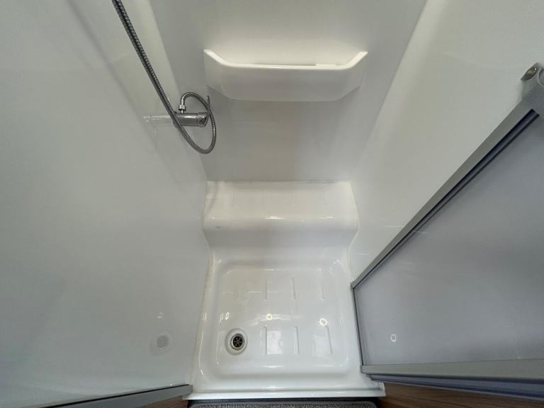 At the front of the caravan, two singles easily convert into a double bed, offering versatile sleeping arrangements to accommodate your needs.