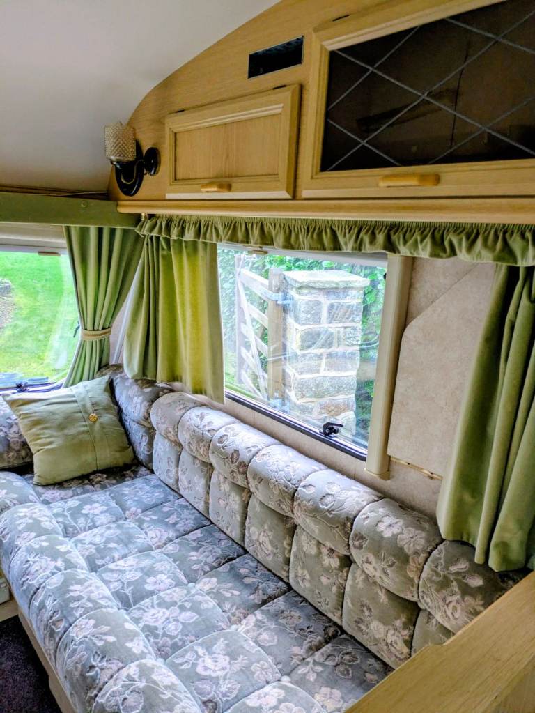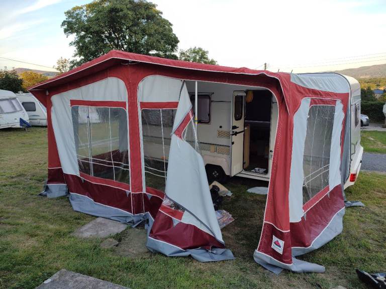 With this caravan comes a large awning for those longer stays, with plenty of space for two small tents (we had growing teenagers!) or a seating / dining area and storage, a medium sized storage cupboard (flat packed in a zipped bag included), curtains, as well as a separate smaller porch awning for road trips.