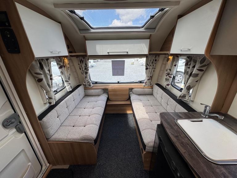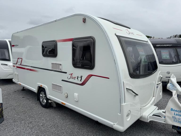 2017 BAILEY JIVE 430 / 4 berth - full rear dressing room featuring a separate shower cubicle, toilet - nearside fixed double bed with offside wardrobes - central offside kitchen - 1 x double dinette / lounge area at the front . With a spacious and well-equipped interior, this caravan provides ample room for living, dining, and relaxing during your travels. The contemporary design and modern features make it a stylish and comfortable choice for all your adventures. With its lightweight design, it's easy to tow and manoeuvre making it a practical choice for both experienced and novice caravan enthusiasts. A super example of a highly popular model which has the benefit of a full service history and 1 owner from new !