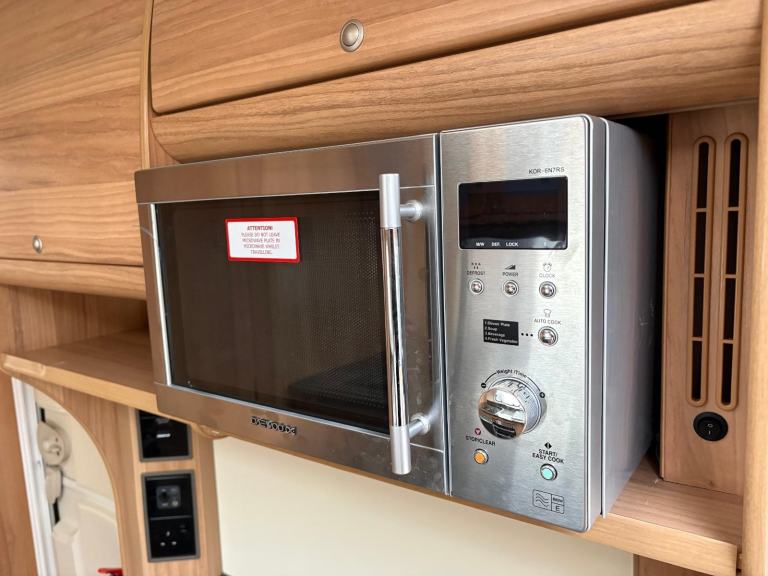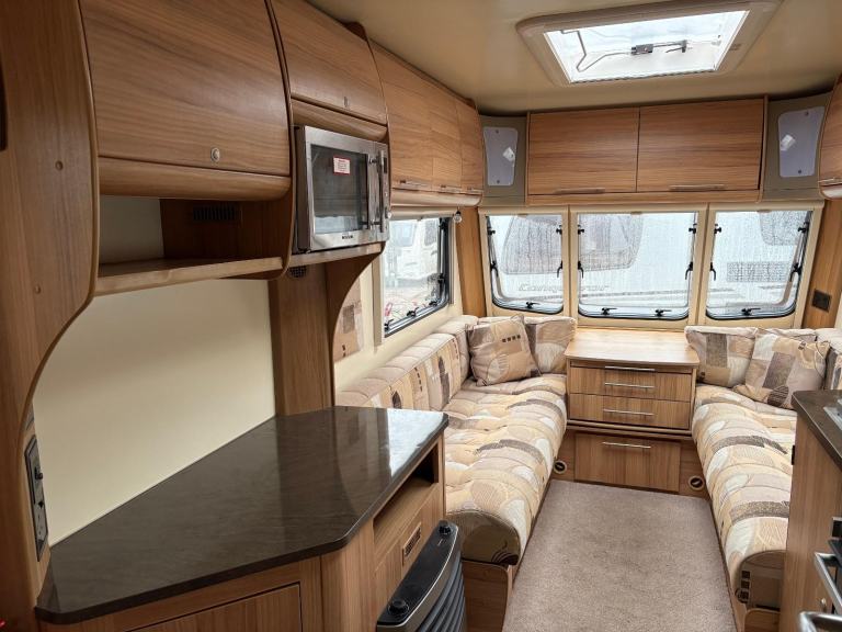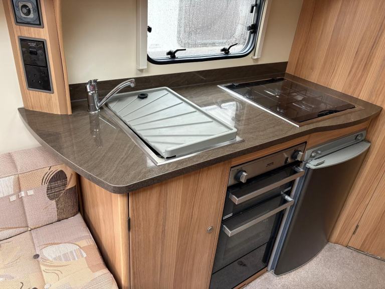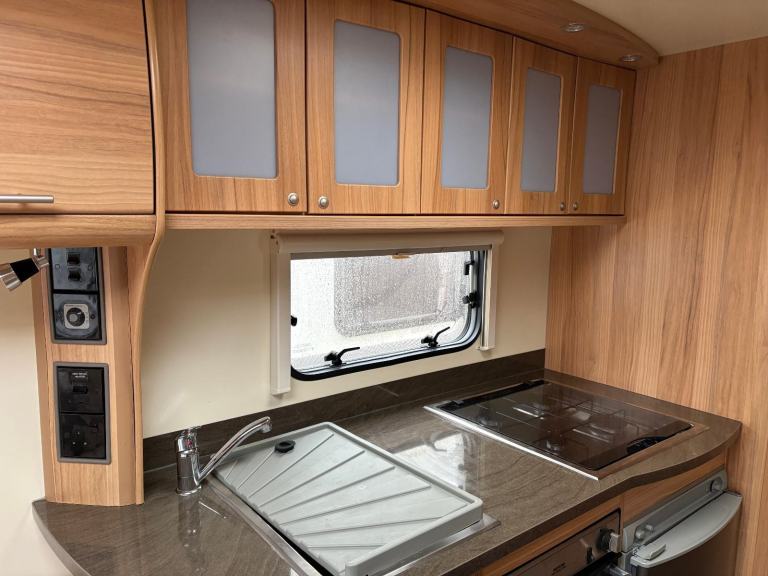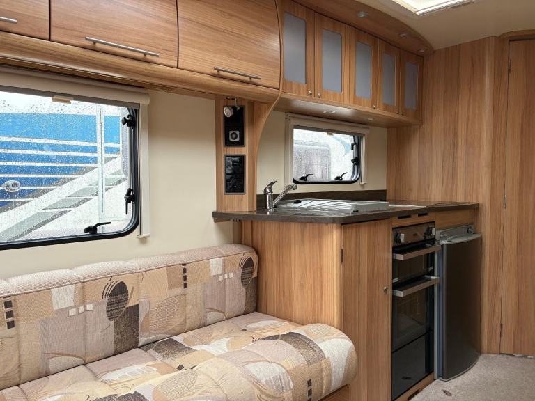 HOT/COLD WATER, 3 WAY FRIDGE, 240V ELECTRICS, HOB/GRILL, OVEN, FIRE, ALDE CENTRAL HEATING, FLYSCREENS/BLINDS,TV AERIEL, SKYLIGHT, ALKO STABILISER HITCH, AUTO ENGAGE MOTORMOVER