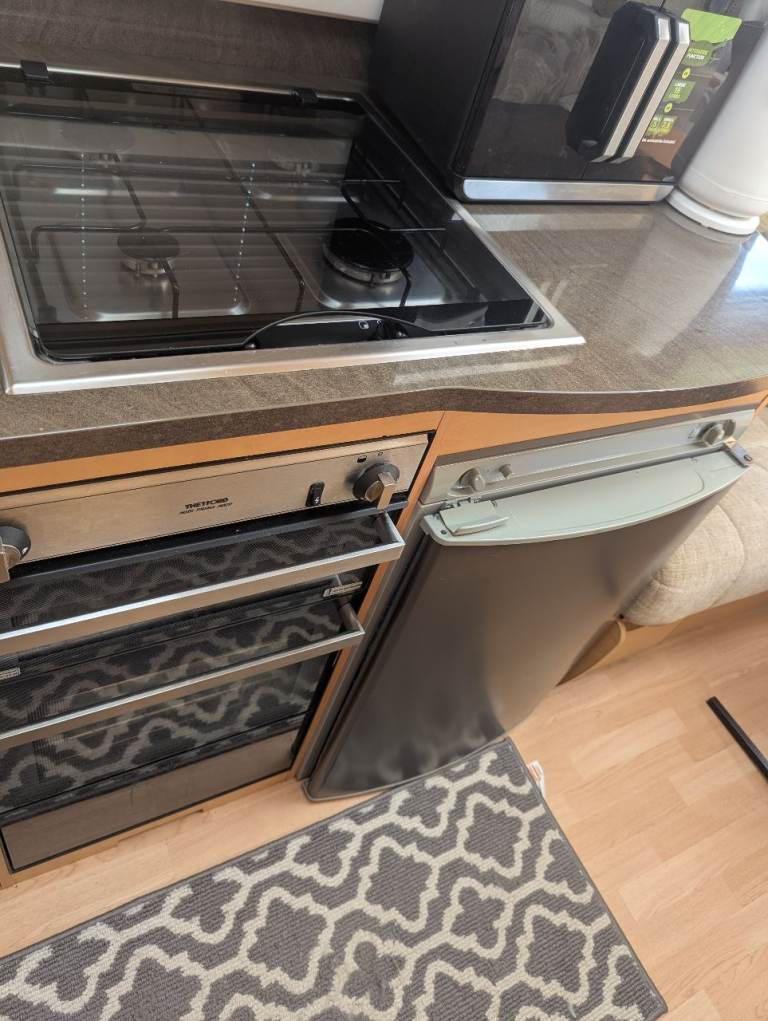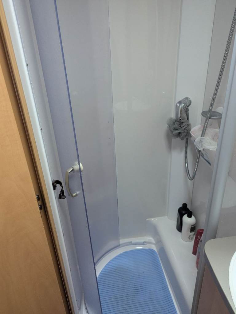 Lovely 5-berth Bailey Olympus 525, in excellent condition throughout. Spacious layout with front lounge converting to a king size bed, rear dinette/table and chairs converting to a double with optional single bunk above, and a full central bathroom with shower.